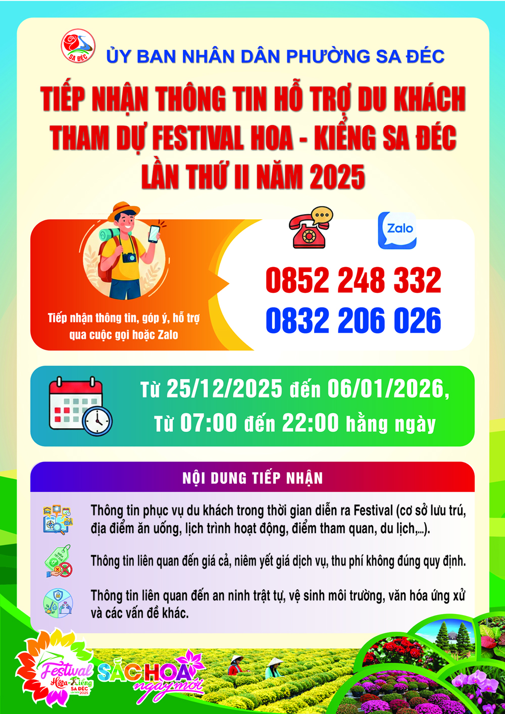 Việc thiết lập kênh tiếp nhận thông tin thể hiện sự chủ động, trách nhiệm của chính quyền địa phương trong công tác phục vụ du khách, góp phần xây dựng hình ảnh Festival Hoa – Kiểng Sa Đéc là sự kiện văn hóa – du lịch hấp dẫn, chuyên nghiệp và ngày càng để lại ấn tượng tốt đẹp trong lòng du khách gần xa.