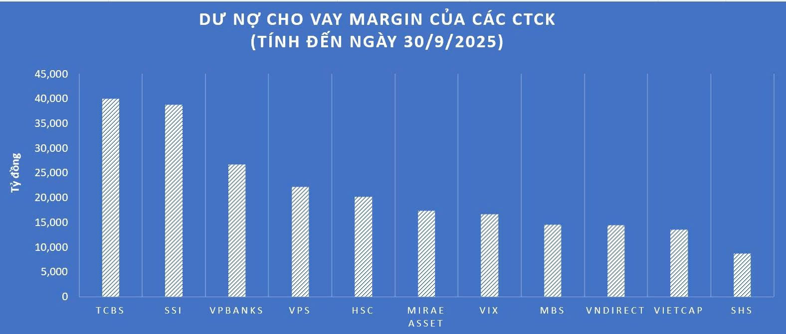 Dòng tiền margin đóng góp đáng kể vào đà hưng phấn này. Tính đến cuối quý III/2025, tổng dư nợ cho vay (gồm margin và ứng trước tiền bán) tại các công ty chứng khoán ước đạt khoảng 383.000 tỷ đồng (khoảng 14,5 tỷ USD), tăng hơn 80.000 tỷ đồng so với cuối quý II và là mức cao kỷ lục trong lịch sử.