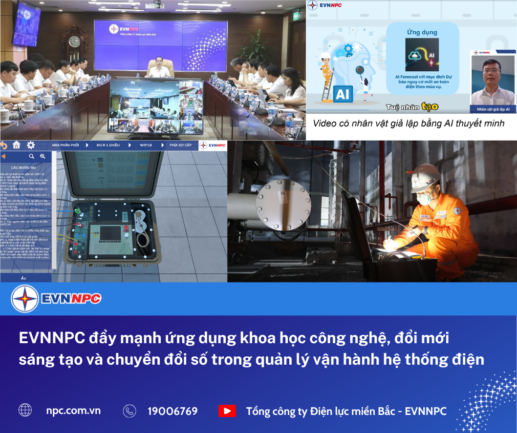 Đặc biệt, EVNNPC đang tăng cường áp dụng công nghệ trạm biến áp kỹ thuật số, đến nay đã vận hành an toàn 8 trạm 110kV KTS và đang triển khai hơn 10 dự án mới, với mục tiêu đến năm 2030 có trên 100 trạm kỹ thuật số trên lưới. Việc ứng dụng UAV kết hợp AI để kiểm tra đường dây 110kV cũng được đẩy mạnh, giúp nhận diện hư hỏng thiết bị nhanh chóng và chính xác, đồng thời EVNNPC đã tích hợp hệ thống camera giám sát vào SCADA để rút ngắn thời gian xử lý sự cố.