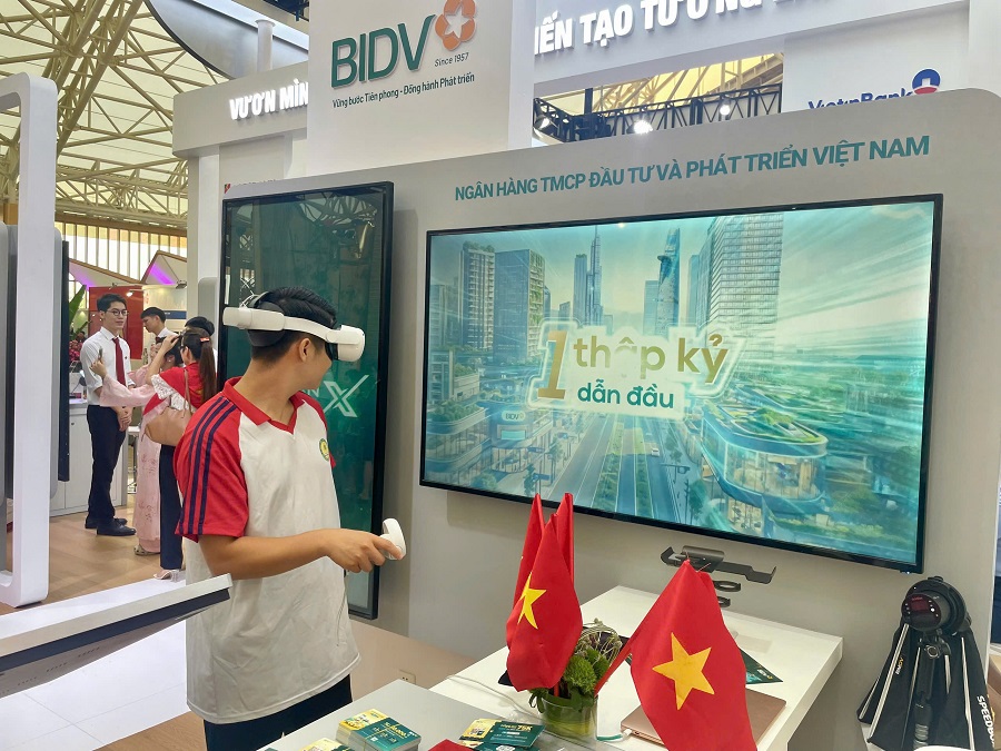 BIDV tạo điểm nhấn với không gian nằm cạnh gian triển lãm rộng và ấn tượng của Ngân hàng Nhà nước - điểm đến đầu tiên trên hành trình tham quan khu vực triển lãm ngành ngân hàng của người dân, cùng với các trải nghiệm sản phẩm dịch vụ số độc đáo và nhiều quà tặng hấp dẫn. Trong không gian trưng bày chung của ngành Ngân hàng mang chủ đề “Kiến tạo phát triển”, ngoài những hình ảnh lịch sử thể hiện bề dày và sứ mệnh đóng góp cho ngành ngân hàng và cho nền kinh tế đất nước, BIDV còn mang đến cho khách tham quan sự thú vị khi được trải nghiệm trực tiếp các dịch vụ Ngân hàng số dành cho tổ chức và cá nhân.