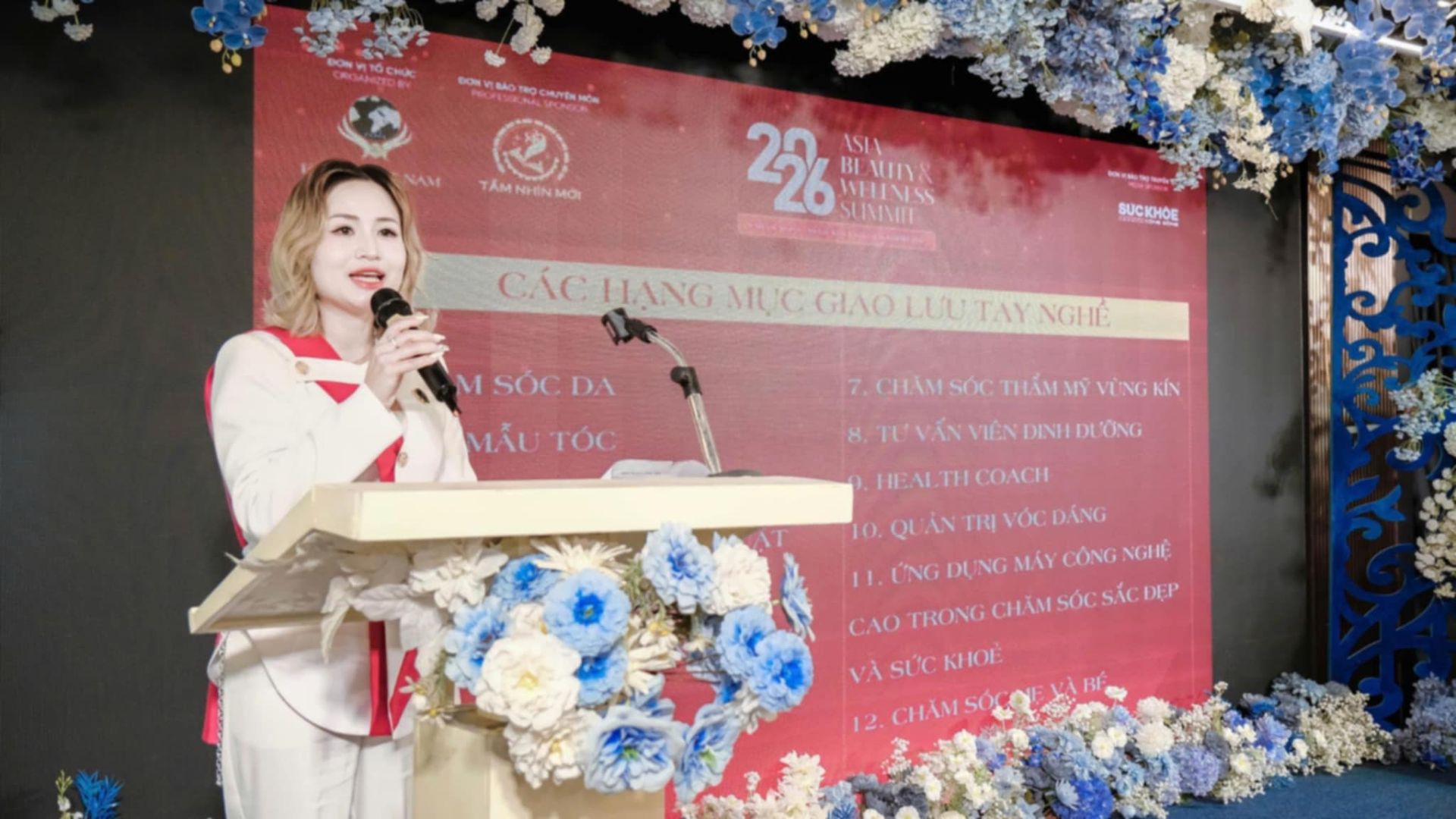 Viện trưởng Viện Nghiên cứu khoa học và giáo dục chăm sóc sức khỏe, sắc đẹp Tầm Nhìn Mới, Chủ tịch FABIA Việt Nam - Trưởng ban tổ chức, bà Đỗ Thành Thoa phát biểu tại chương trình