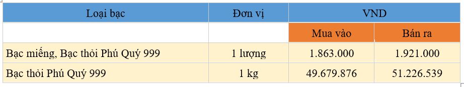 - Cập nhật bảng giá bạc mới nhất hôm nay tại Tập đoàn Vàng bạc Đá quý Phú Quý: