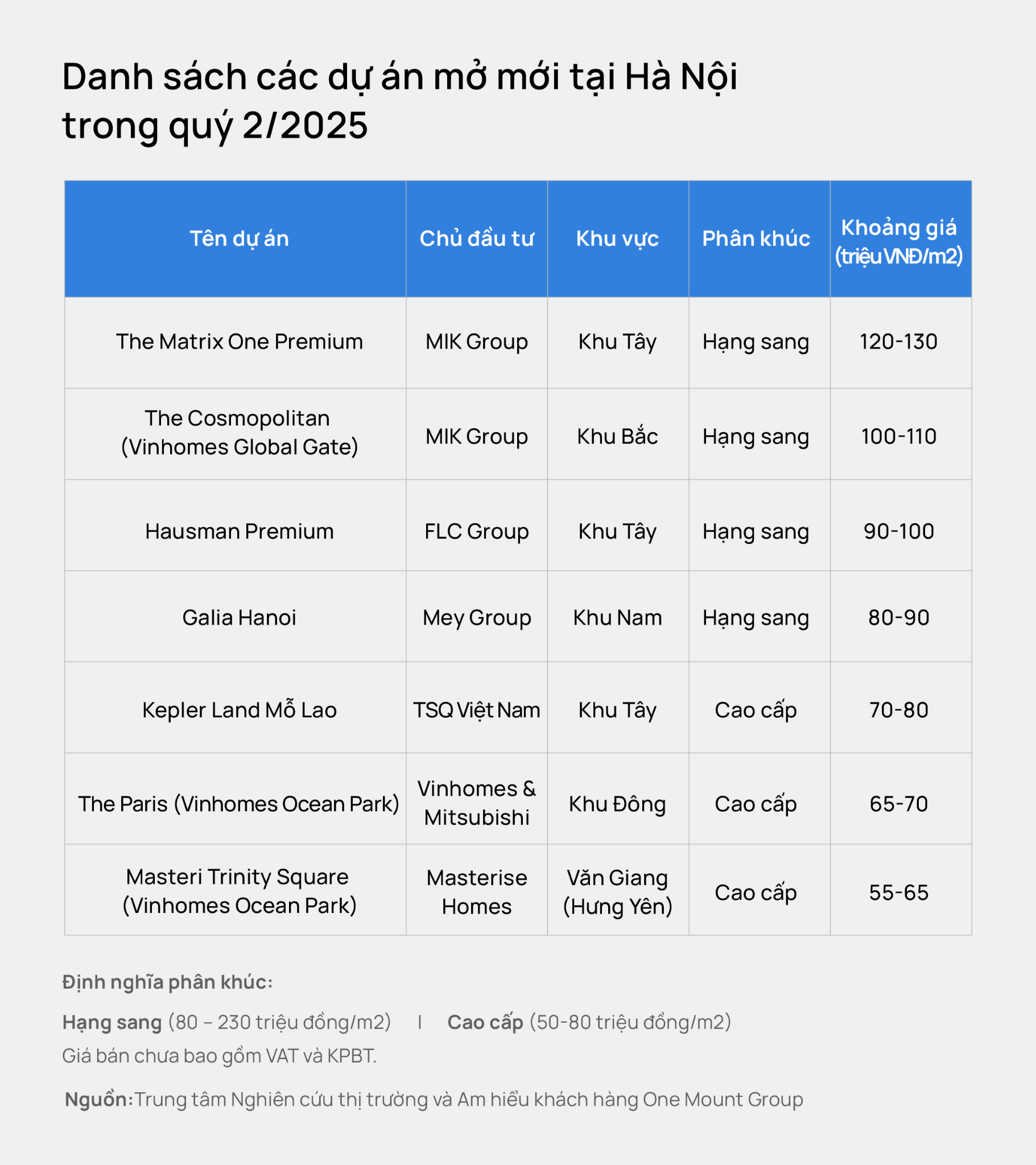Lý giải sự tăng tốc của Hà Nội, ông Trần Minh Tiến – Giám đốc Trung tâm Nghiên cứu Thị trường và Am hiểu Khách hàng One Mount Group – cho rằng nguyên nhân chủ yếu đến từ sự thay đổi trong cơ cấu nguồn cung. Trong quý II/2025, thị trường Hà Nội không ghi nhận dự án trung cấp mới nào được mở bán. Các sản phẩm mở bán chủ yếu tập trung ở phân khúc cao cấp và hạng sang, trong đó có 4 dự án hạng sang lớn với mức giá trung bình vượt 80 triệu đồng/m² (chưa gồm VAT và phí bảo trì). Điều này kéo mặt bằng giá toàn thị trường tăng vọt.