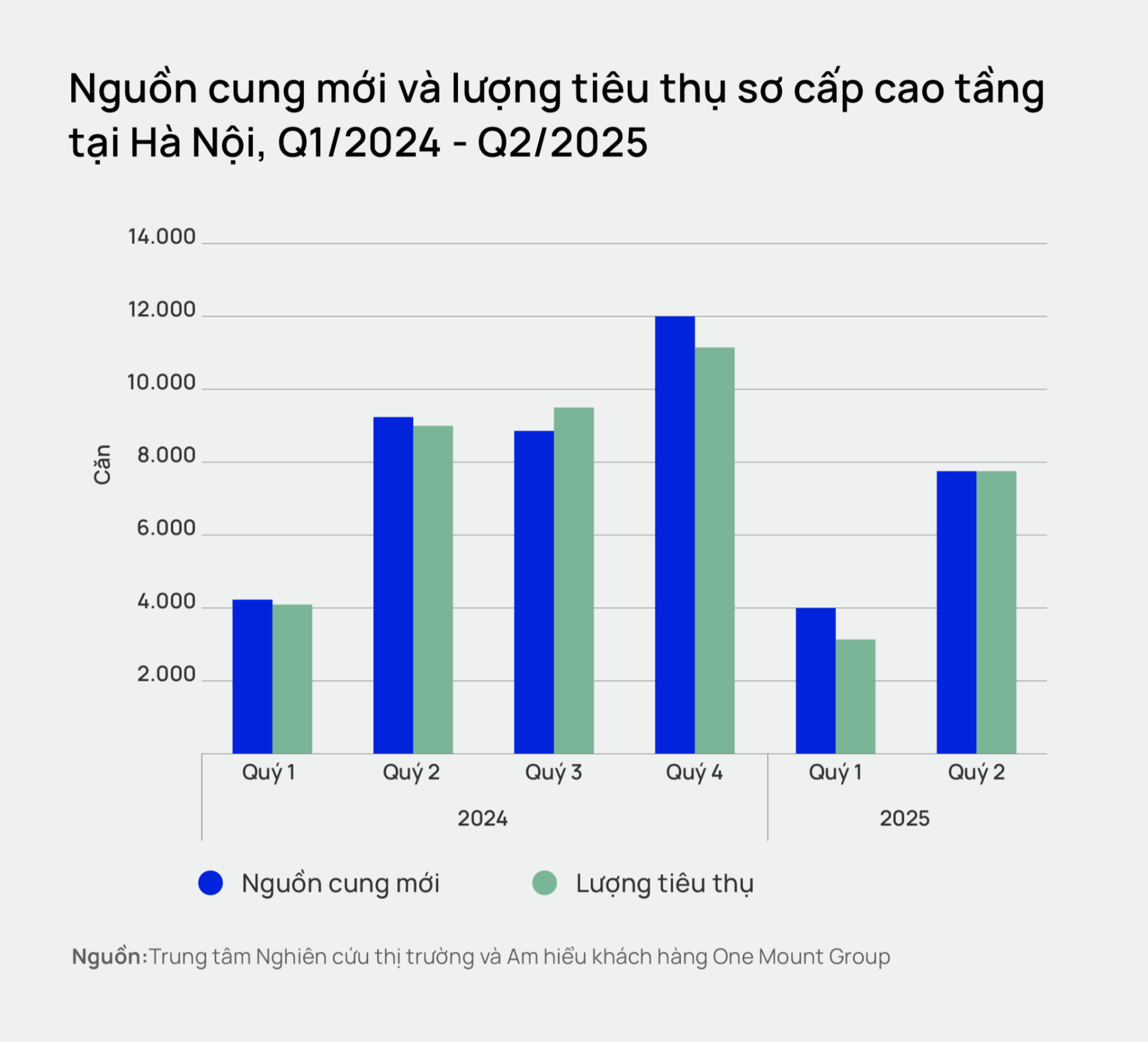 Theo dữ liệu từ Trung tâm Nghiên cứu Thị trường và Am hiểu Khách hàng One Mount Group, quý 2/2025, Hà Nội chào đón 7.800 căn hộ mới ra thị trường – gần gấp đôi so với quý trước và cho thấy sự phục hồi mạnh mẽ sau giai đoạn chững lại đầu năm. Đáng chú ý, lượng giao dịch cũng đạt 7.800 căn, tăng 143% so với quý 1/2025, gần tương đương nguồn cung mới – một tín hiệu tích cực cho thấy mức độ hấp thụ của thị trường rất tốt, dù giá bán đang trong xu hướng leo thang.