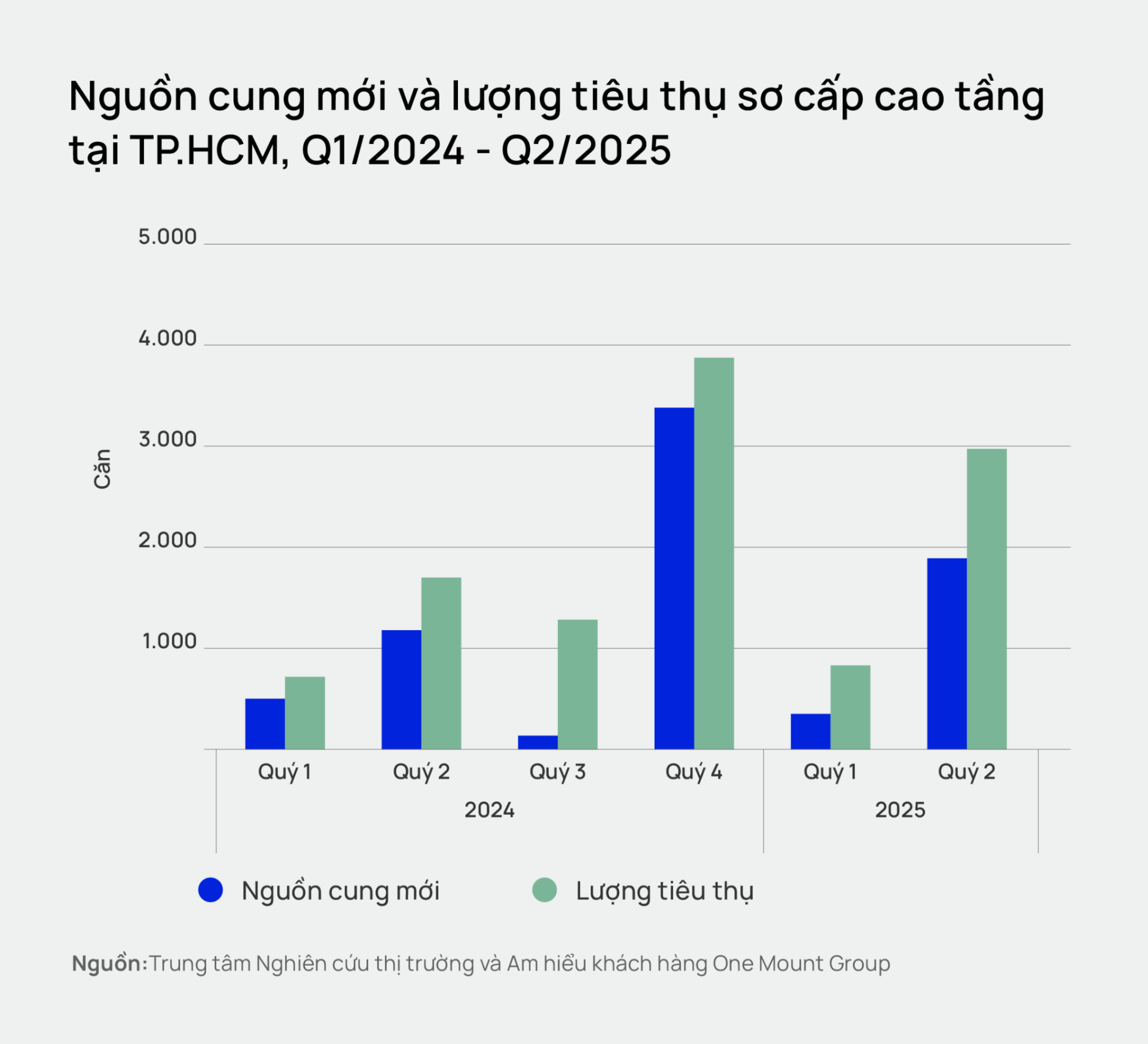 Ngược lại, TP.HCM tuy có nguồn cung hạn chế nhưng cơ cấu sản phẩm lại cân bằng hơn. Đặc biệt, quý 2/2025 có sự góp mặt của một dự án trung cấp lớn, chiếm khoảng 42% tổng nguồn cung mới, đã giúp thị trường giữ được mặt bằng giá ổn định và không tăng đột biến. Đây là yếu tố chính khiến giá căn hộ tại TP.HCM đi ngang trong khi Hà Nội liên tục tăng.