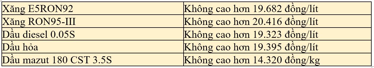 Cụ thể, giá xăng E5RON92 giảm 78 đồng/lít, xăng RON95-III giảm 72 đồng/lít, dầu diesel tăng 120 đồng/lít, dầu hỏa tăng 124 đồng/lít và dầu mazut giảm 319 đồng/kg.