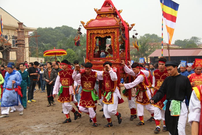 Ngoài phần Lễ của hội làng, để nhân dân cầu mong một năm mưa thuận gió hòa, cầu mong mọi điều tốt lành sẽ đến với mọi người. Kiệu của làng được rước vào ngày 15, điều đặc biệt là khi rước kiệu, kiệu sẽ quay chứ không đi theo một đường nhất định, theo các cụ cao tuổi trong làng cho biết: "Khi Thánh ngồi trên kiệu thì kiệu sẽ nặng còn khi Thánh bay thì kiệu nhẹ và quay".