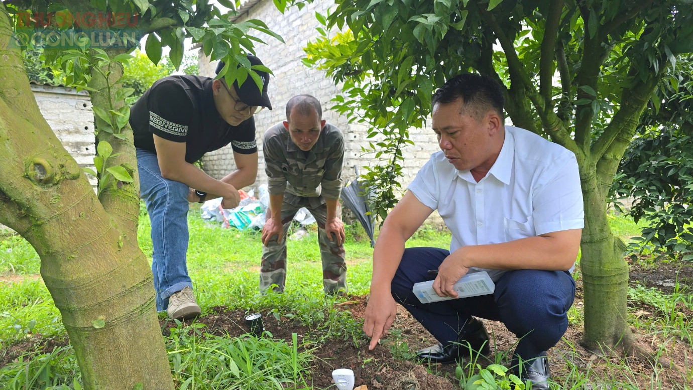 Mỗi bước hướng dẫn của anh đều được minh họa trực tiếp trên cây cam trước mặt. Khi bón thử nghiệm, anh còn chỉ bà con cách ủ chế phẩm, liều lượng pha tưới, và cả cách quan sát màu lá, độ bóng vỏ quả để nhận biết cây có hấp thụ tốt hay chưa. Anh vạch nhẹ lớp đất quanh gốc để bà con tận mắt thấy những rễ tơ trắng nõn đang lan rộng, rễ phụ đâm khỏe và bám chắc, giúp cây hấp thu dinh dưỡng tốt hơn.