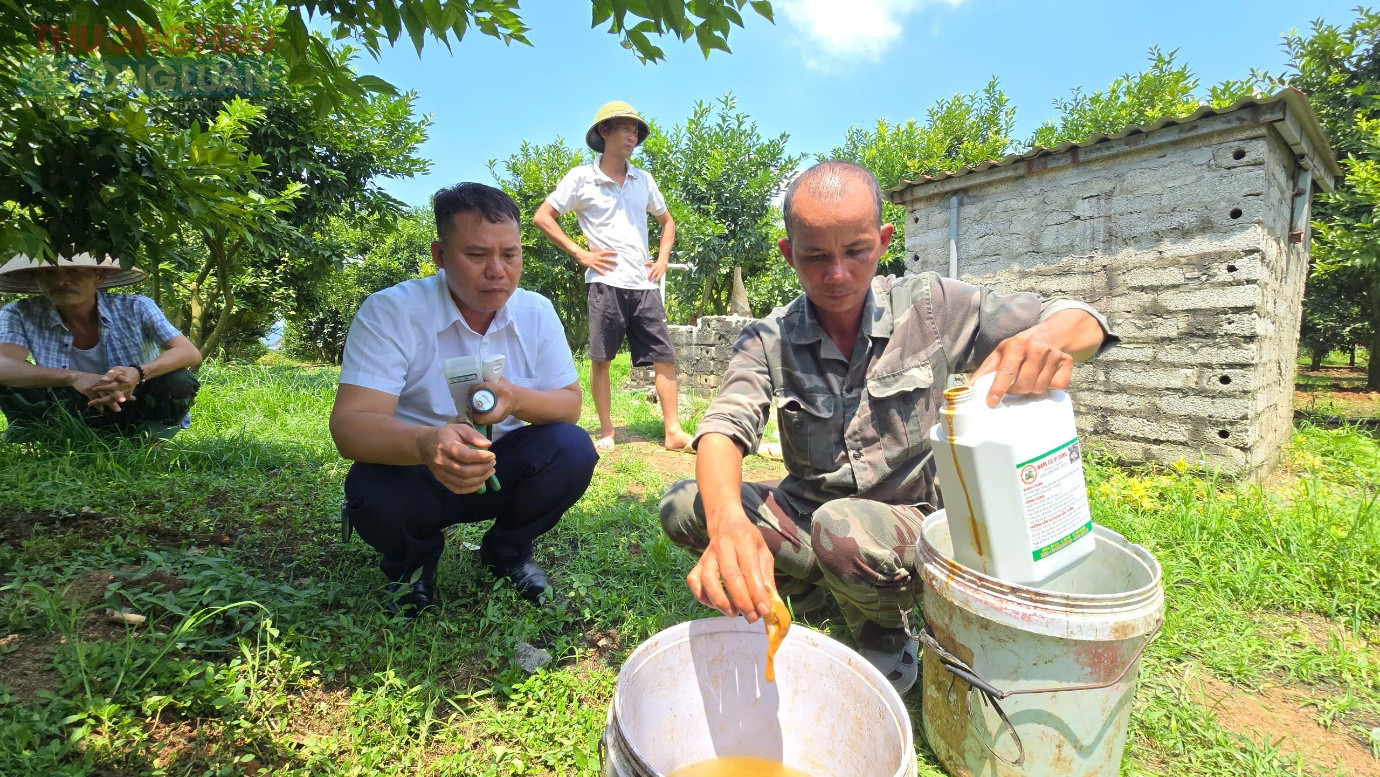 Ở vườn cam của anh Mười, anh Thắng nhẹ nhàng ngồi xuống gốc cây, đưa mắt quan sát từng chùm rễ, vuốt nhẹ từng chiếc lá rồi sau đó tỉ mỉ đo từng thông số dinh dưỡng, trông ân cần chẳng khác nào một vị lương y đang thăm khám cho người bệnh đã ốm lâu ngày. Anh giải thích rành rọt cho bà con: “Đất của mình hiện hơi chua, pH dưới 6, cây dễ bị vàng lá. Nhưng khi dùng đạm cá hữu cơ, không chỉ cung cấp dinh dưỡng mà còn giúp cải tạo độ pH, tăng độ tơi xốp, trả lại sức sống cho đất”.