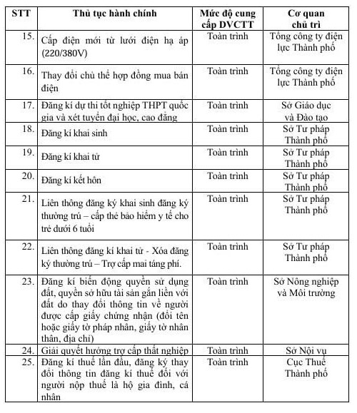 Bên cạnh đó, công văn nêu: Quán triệt cán bộ, công chức, viên chức, nhân viên được giao nhiệm vụ hướng dẫn, tiếp nhận hồ sơ, giải quyết thủ tục hành chính có trách nhiệm hỗ trợ, hướng dẫn người dân nộp hồ sơ, giải quyết thủ tục hành chính đối với 25 dịch vụ công trực tuyến thiết yếu dưới hình thức trực tuyến toàn trình, không yêu cầu người dân cung cấp thành phần hồ sơ giấy dưới bất cứ hình thức, thời điểm nào.