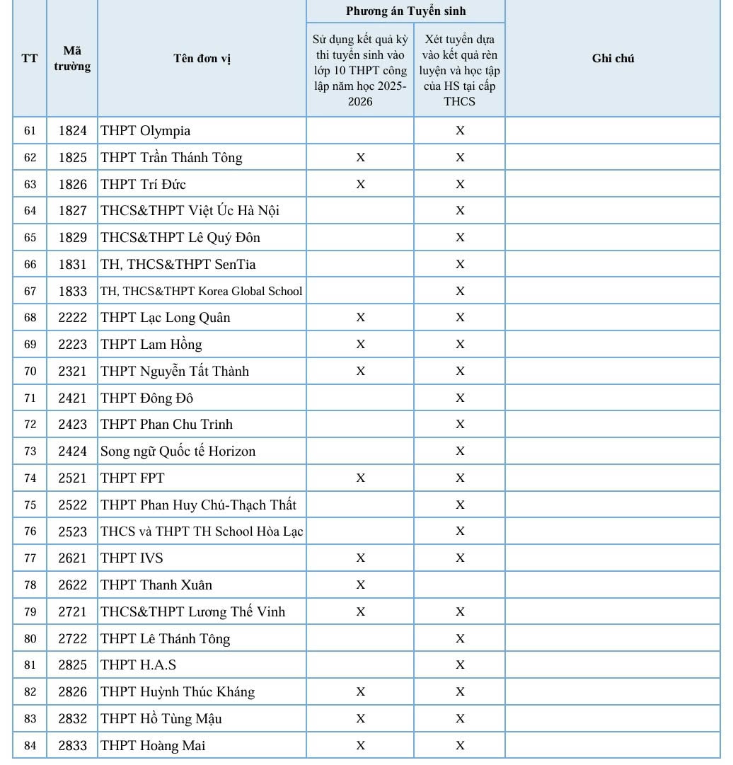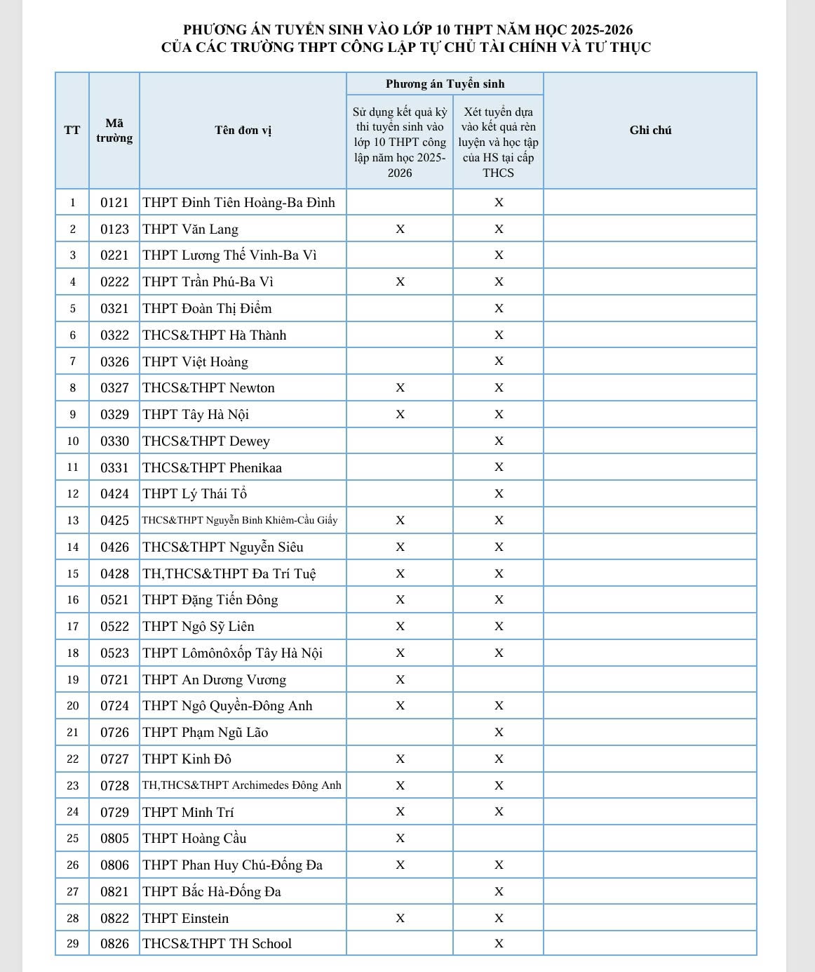 Học sinh tra cứu phương án xét tuyển vào lớp 10 của từng trường THPT tư thục theo bảng dưới đây để có thêm thông tin quyết định lựa chọn nguyện vọng đăng ký xét tuyển lớp 10: