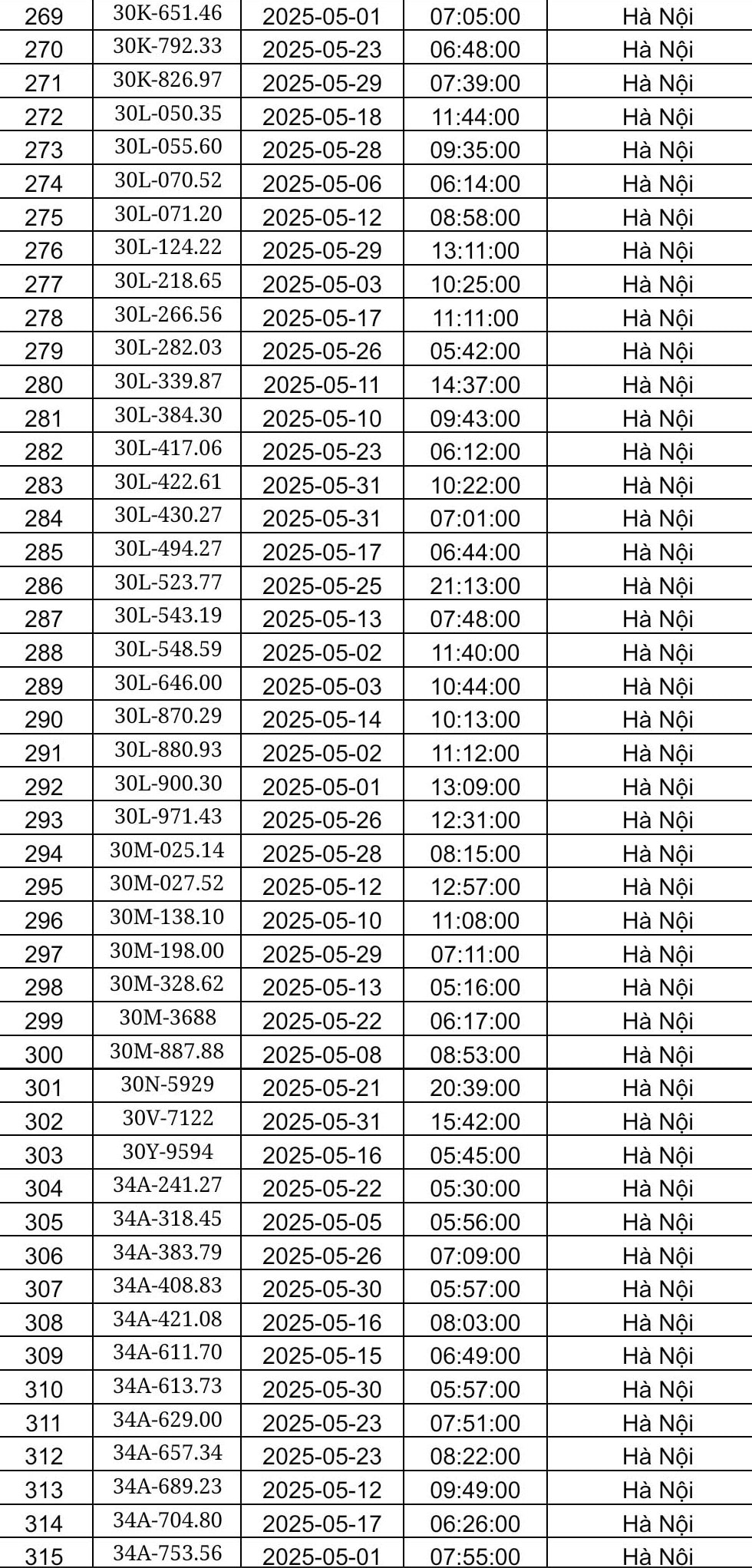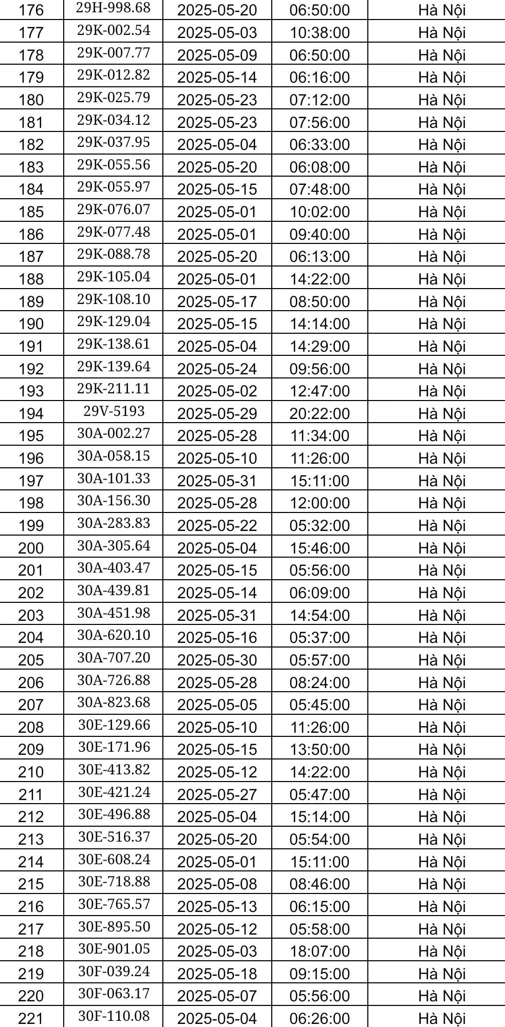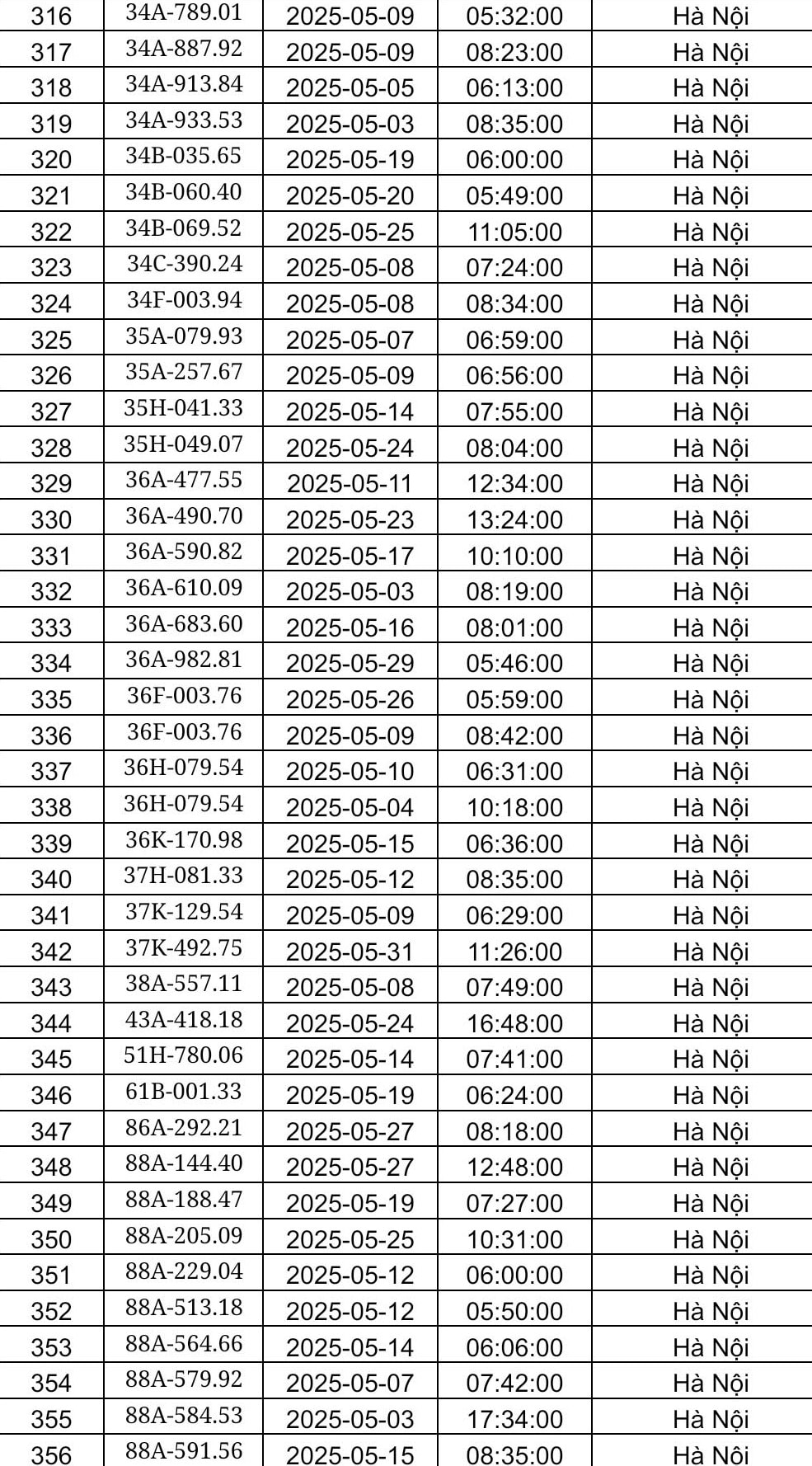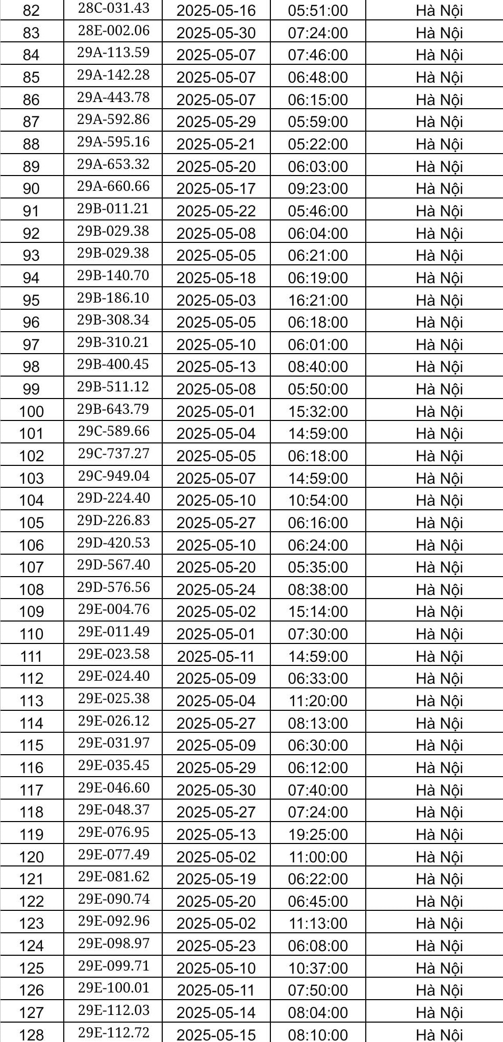 Cụ thể, ngày 11/6 Phòng Cảnh sát giao thông, Công an TP. Hà Nội vừa thông báo danh sách phương tiện ô tô vi phạm trật tự an toàn giao thông trong tháng Năm (từ ngày 1/5 đến 31/5/2025), được phát hiện qua hệ thống giám sát.