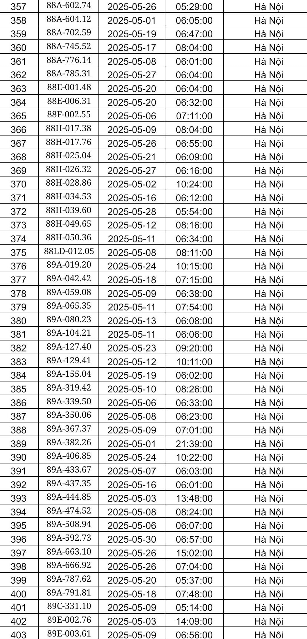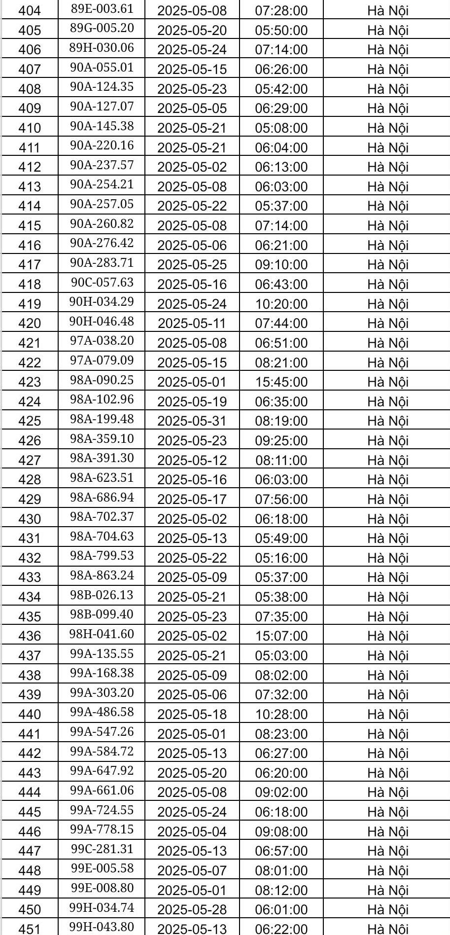 Đưới đây, là danh sách 451 phương tiện vi phạm bị xử lý phạt nguội trong tháng 5/2025: