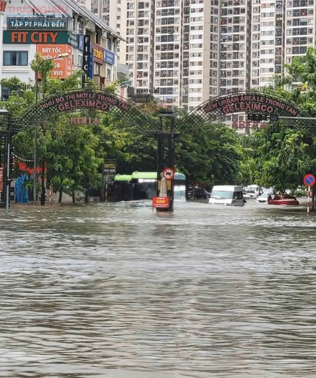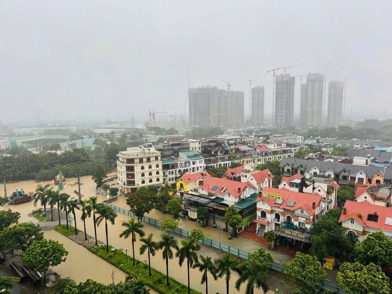 Tại khu vực Khu đô thị Nam An Khánh, nhiều căn nhà liền kề, shophuse trên đường Hoàng Tùng ngập sâu trong nước. Dù nằm trong khu đô thị mới được quy hoạch đồng bộ, tình trạng ngập lụt sau mỗi trận mưa lớn vẫn thường xuyên tái diễn.
