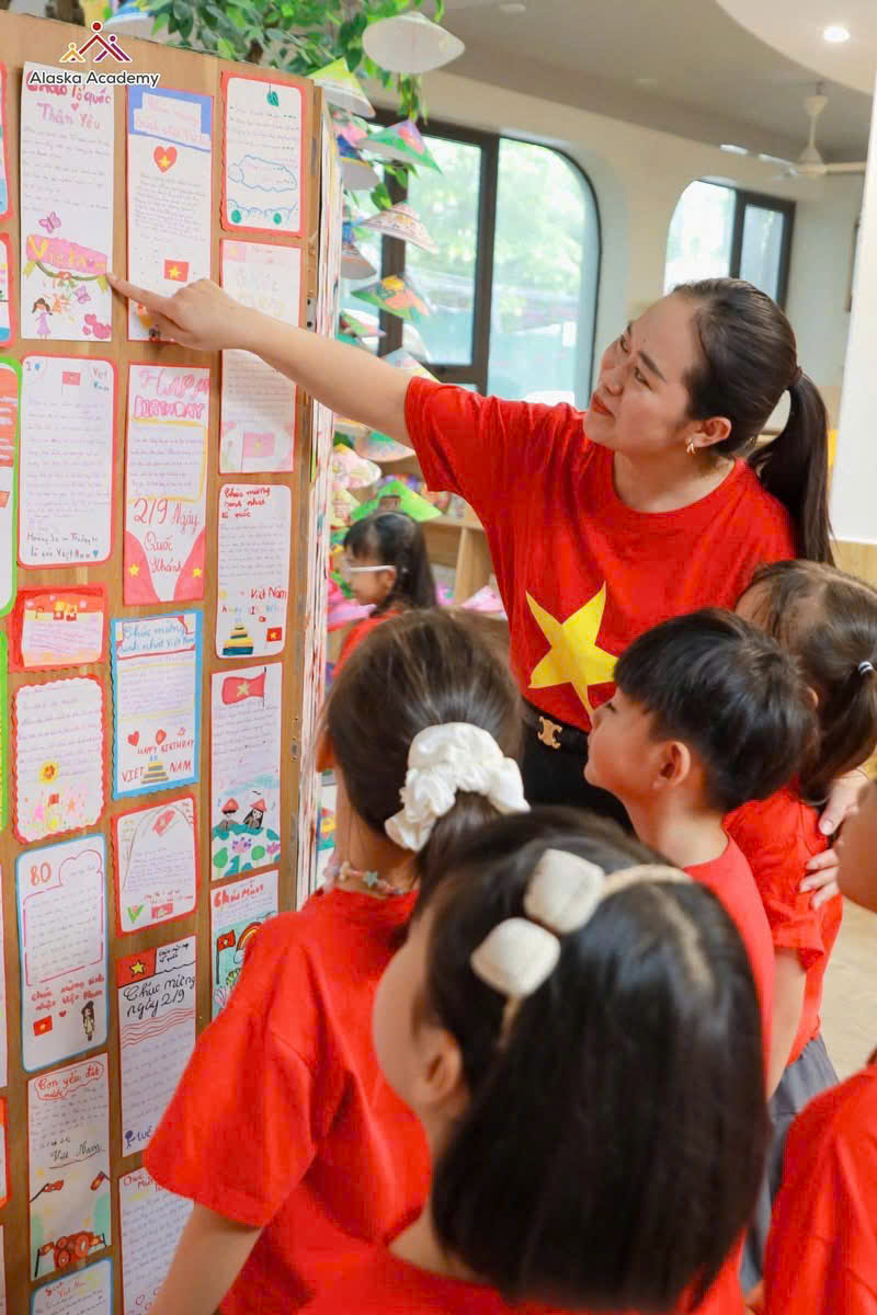 Điểm đáng chú ý là phong trào mặc áo cờ đỏ sao vàng không chỉ dừng ở việc chụp ảnh kỷ niệm. Nhiều trường đã kết hợp với các hoạt động giáo dục truyền thống như kể chuyện lịch sử, chiếu phim tài liệu, làm thiệp tri ân anh hùng liệt sĩ. Nhờ đó, mỗi bức ảnh không chỉ mang ý nghĩa lưu giữ kỷ niệm mà còn trở thành cách lan tỏa tinh thần yêu nước gần gũi, hiện đại và đầy cảm hứng.