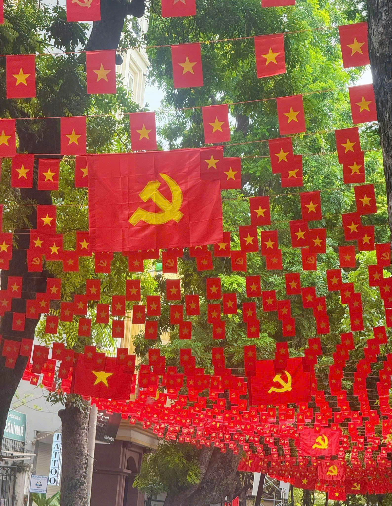 Khắp các trục đường lớn như Nguyễn Thái Học, Chu Văn An, Hoàng Diệu, Hùng Vương, Đinh Tiên Hoàng, Thanh Niên, Điện Biên Phủ, Tràng Tiền, Hàng Mã… rợp cờ đỏ sao vàng, băng rôn, áp phích khổ lớn.