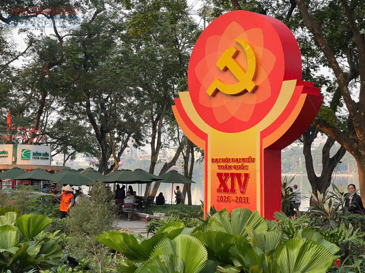 Tại nhiều địa điểm mang ý nghĩa lịch sử, văn hóa, chính trị quan trọng như khu vực Quảng trường Ba Đình, Lăng Chủ tịch Hồ Chí Minh, hồ Hoàn Kiếm, cùng các vòng xuyến, trục đường lớn, trụ sở cơ quan, công viên…, biểu trưng Đại hội XIV với hình ảnh cờ đỏ, búa liềm vàng được bố trí trang trọng, hài hòa với cảnh quan đô thị.