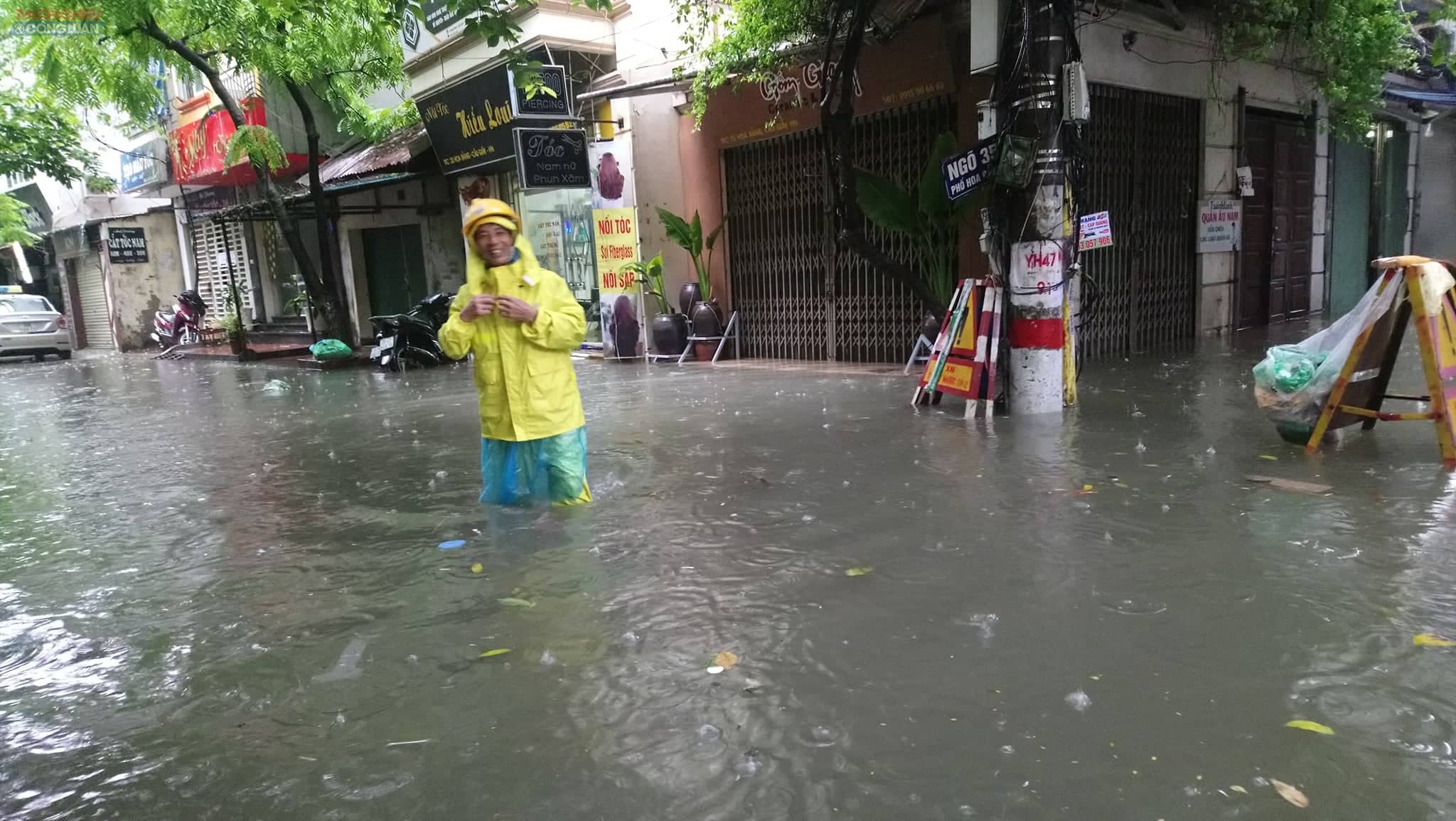 Nước ngập mấp mé nền nhà, khiến cho việc sinh hoạt của các hộ dân trên nhiều tuyến phố gặp rất nhiều khó khăn