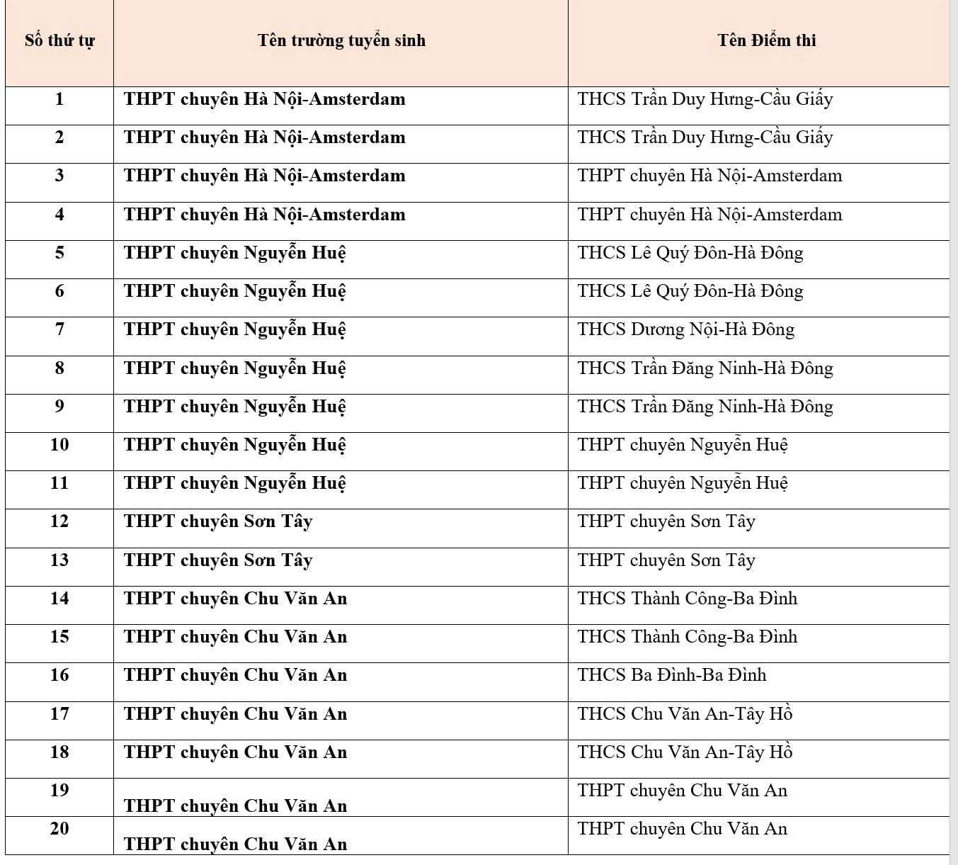 Sở Giáo dục và Đào tạo Hà Nội cũng đã công bố danh sách 20 điểm thi vào lớp 10 chuyên, năm học 2025 - 2026.