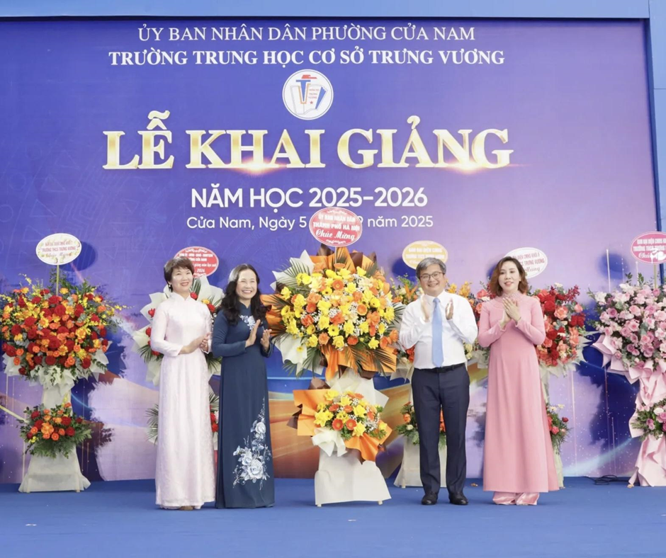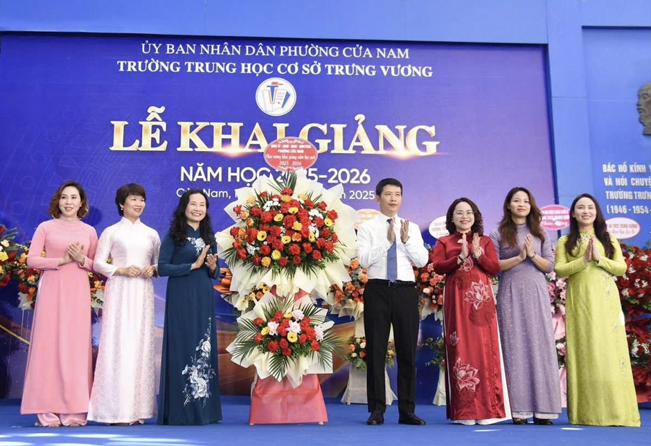 Lễ khai giảng năm học mới 2025 - 2026 của Trường THCS Trưng Vương (Hà Nội), vinh dự được đón: Thành ủy viên, Phó chủ tịch UBND Thành phố Hà Nội, Trương Việt Dũng; Bí thư Đảng ủy, Chủ tịch HĐND phường Cửa Nam, Phạm Tuấn Long.