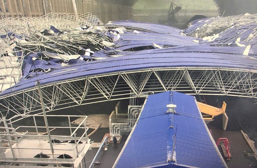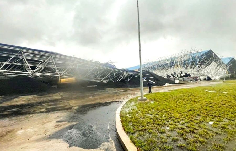 Thông tin từ Nhà máy Nhiệt điện Vũng Áng II, do ảnh hưởng của bão số 10, kho chứa than của nhà máy này bị đổ sập, hư hỏng nghiêm trọng.