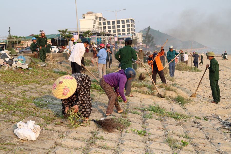 Tại 69 xã, phường, đông đảo lực lượng tham gia ra quân làm sạch khu dân cư và bờ biển
