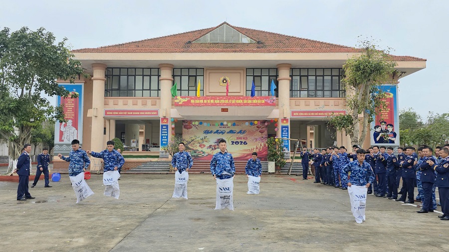 Bước sang ngày mồng 1 Tết, không khí Xuân tiếp tục rộn ràng với các trò chơi dân gian như: phi tiêu trúng thưởng, bịt mắt bắt vịt, đá bóng trúng đích, bịt mắt đập bóng nước, kéo co, nhảy bao bố, đẩy gậy… Tiếng cười giòn giã vang khắp sân đơn vị. Những trò chơi giản dị nhưng hun đúc tinh thần đồng đội, sự phối hợp nhịp nhàng và ý chí quyết tâm - những phẩm chất luôn cần thiết trong thực hiện nhiệm vụ trên biển.