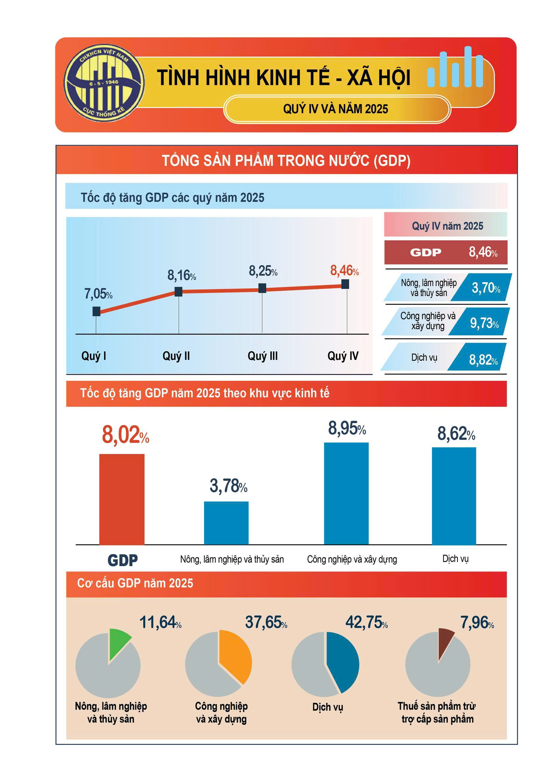 Các lĩnh vực an sinh xã hội cũng đạt nhiều kết quả ấn tượng: GRDP bình quân đầu người đạt 194,5 triệu đồng/người/năm; giải quyết việc làm cho hơn 61.000 lượt lao động; tỷ lệ hộ nghèo theo chuẩn đa chiều giảm xuống mức tối thiểu (0,5%).