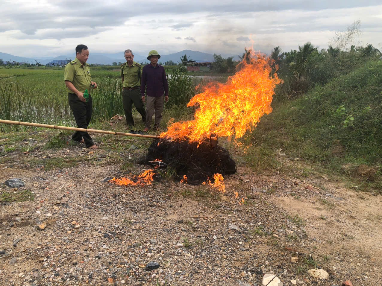 Tổ công tác đã phối hợp với chính quyền địa phương tổ chức tháo dỡ, phá hủy tại chỗ khoảng 1500 m lưới cước màu đen và 15 con chim giả bằng xốp dùng để dụ bẫy chim.