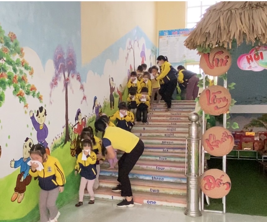 Lực lượng chức năng đã dành thời lượng hướng dẫn trực tiếp cho các cháu học sinh mầm non kỹ năng thoát nạn khi xảy ra cháy. Các em được thực hành kỹ năng cúi thấp người khi có khói, di chuyển theo hàng, dùng khăn ướt che mũi – miệng và nhận biết các lối thoát hiểm. Giáo viên mầm non được tập huấn phương pháp tổ chức sơ tán trẻ nhanh chóng, trật tự, đảm bảo an toàn tuyệt đối.