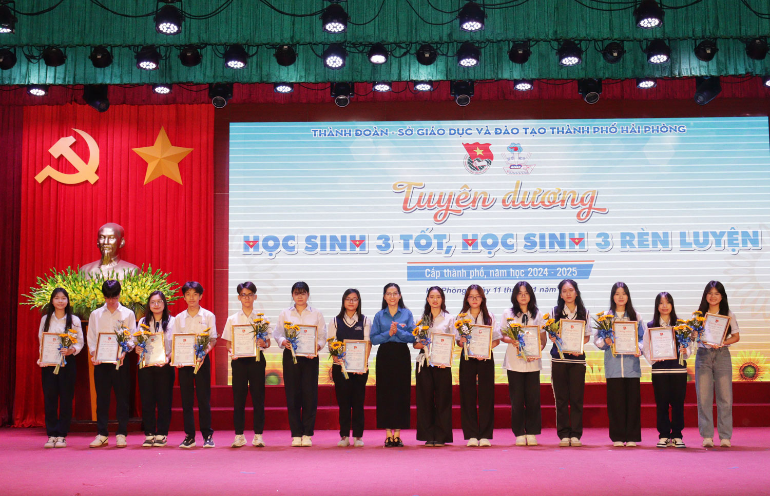 Nhân dịp này, 100 học sinh được tuyên dương danh hiệu “Học sinh 3 tốt”, “Học sinh 3 rèn luyện” cấp thành phố năm học 2024 - 2025, trở thành tấm gương sáng trong học tập và rèn luyện của tuổi trẻ Hải Phòng.