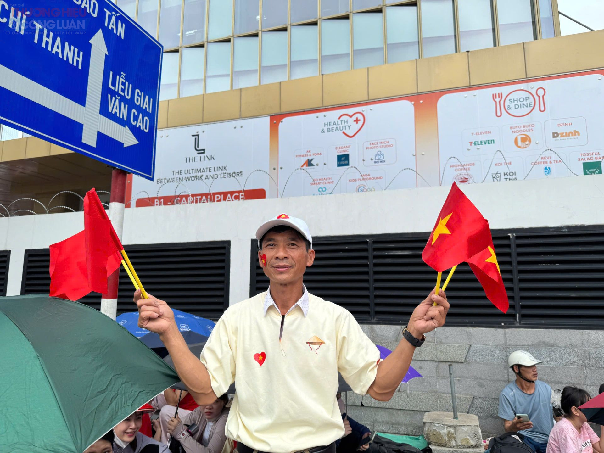 Trong dòng người rợp sắc cờ hoa, đông đảo cựu chiến binh từ nhiều tỉnh, thành cũng có mặt. Ông Nguyễn Hữu Minh (Nghệ An), từng tham gia chiến dịch giải phóng Campuchia, bồi hồi: “Tôi bắt xe ra Hà Nội từ hôm qua, rất hồi hộp và vui sướng được chào mừng 80 năm Quốc khánh”.
