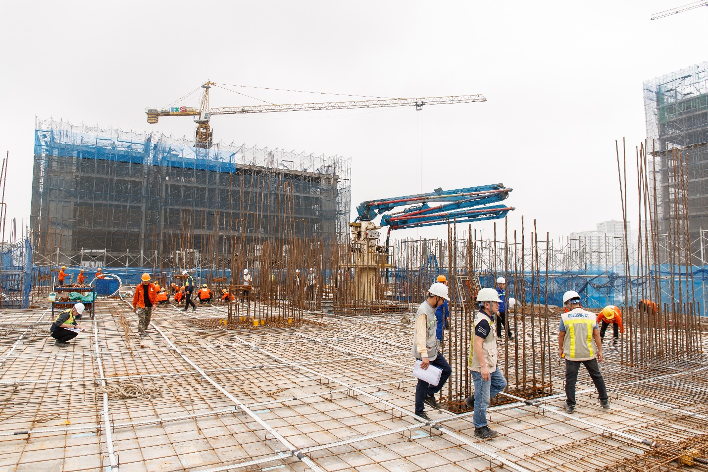 Những hình ảnh trực tiếp từ công trường cho thấy không khí làm việc khẩn trương với hàng trăm công nhân lao động và kỹ sư. Các ca làm việc nối tiếp trong khi máy móc vận hành hết công suất để theo kịp tiến độ.