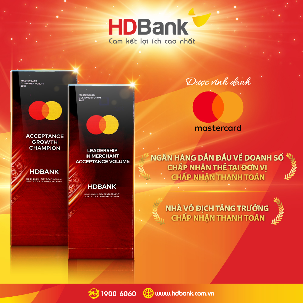 Trong năm 2025, HDBank cũng liên tiếp được Visa và Napas vinh danh ở nhiều hạng mục quan trọng. Với Napas, HDBank được trao hai giải thưởng: Ngân hàng dẫn đầu về hiệu quả đầu tư và phát triển mạng lưới POS (Bank with the Best POS Network 2025) và Ngân hàng dẫn đầu về hiệu quả đầu tư và phát triển đơn vị chấp nhận thanh toán trực tuyến (Bank with the Best Online Merchant Network 2025). Các ghi nhận này phản ánh năng lực triển khai đồng bộ của HDBank trong cả thanh toán trực tiếp tại điểm bán và thanh toán trực tuyến phục vụ thương mại điện tử, nền tảng số và các hệ sinh thái dịch vụ hiện đại.