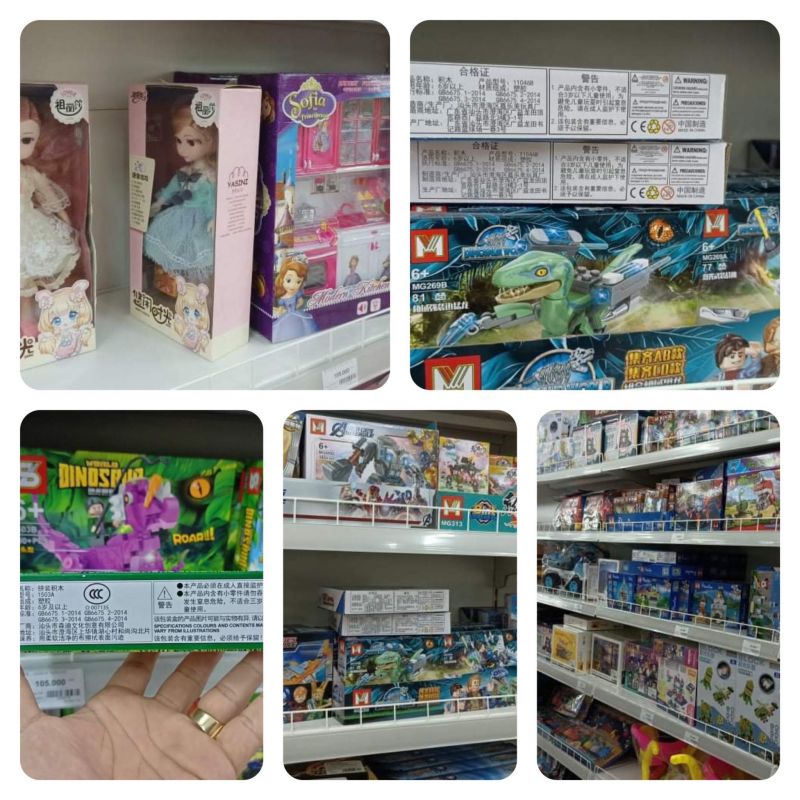 Có mặt tại một siêu thị trên địa bàn huyện Hoằng Hóa, ngay tại khu vực gian hàng đồ gia dụng, trưng bày quần áo, đồ chơi trẻ em, PV dễ dàng phát hiện sản phẩm có tem nhãn chữ Trung Quốc mà không có nhãn phụ, cũng không thấy ghi thông tin của đơn vị nhập khẩu, mà chỉ thấy gắn mác giá sản phẩm.