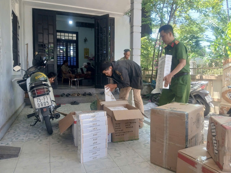 Qua khai thác nhanh, lực lượng công an tổ chức xác minh và khám xét khẩn cấp nơi ở của Nguyễn Thị Sương, địa chỉ số 11 đường Lý Nam Đế, phường An Hòa và số 04 kiệt 192 đường Lý Nam Đế, phường Hương Long, quận Phú Xuân, đơn vị thu thêm 2.240 bao thuốc các loại JET, HERO, ESSE.