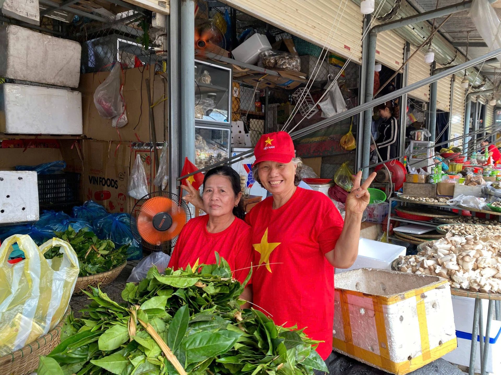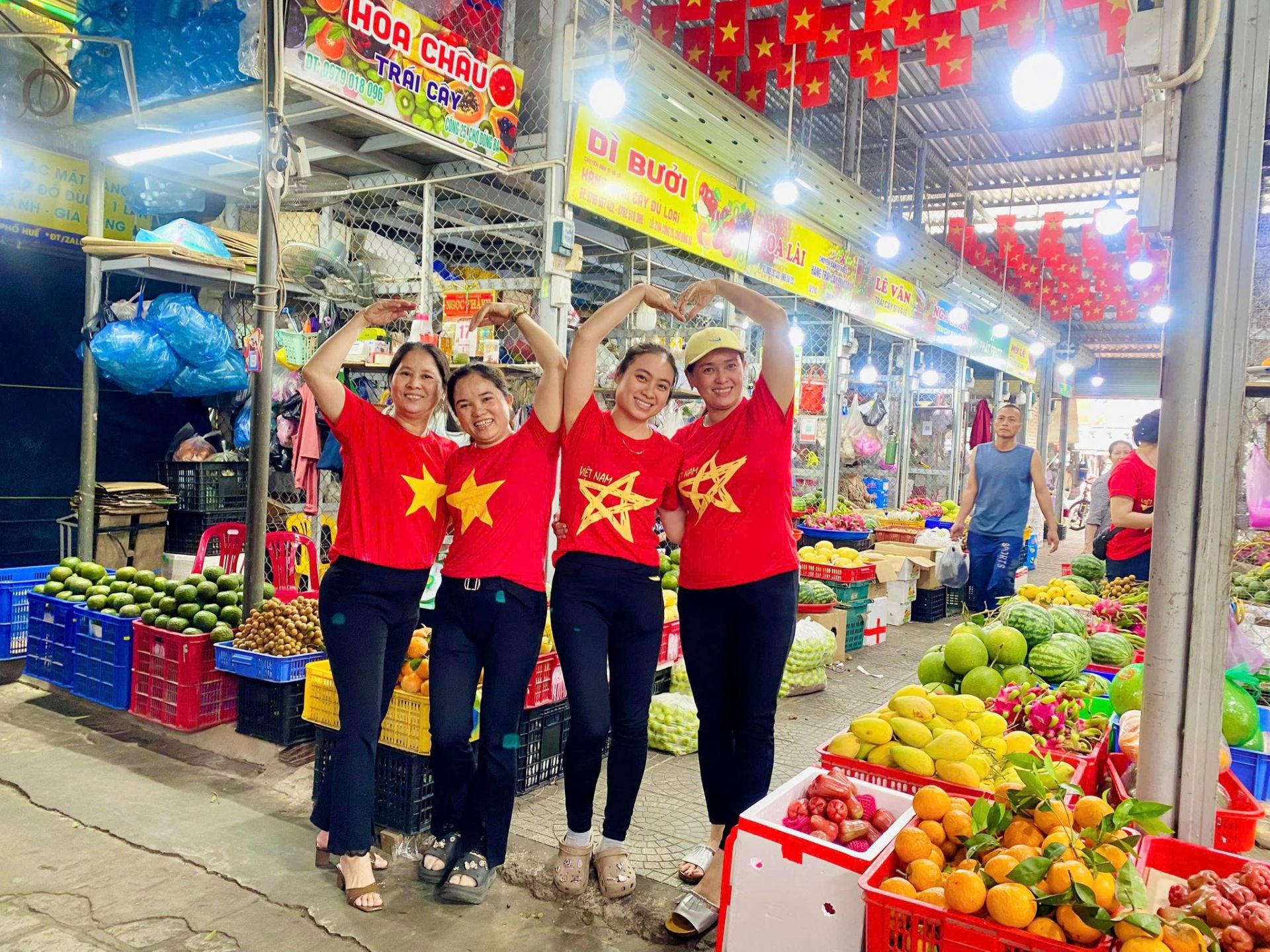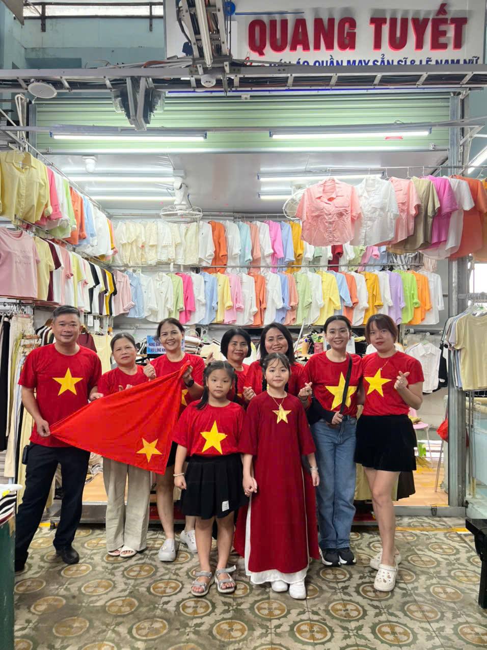 Sắc đỏ lan tỏa khắp các gian hàng, tạo nên hình ảnh vừa gần gũi, vừa đầy tự hào dân tộc.