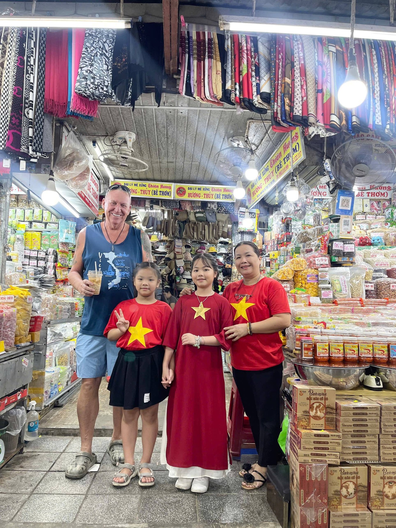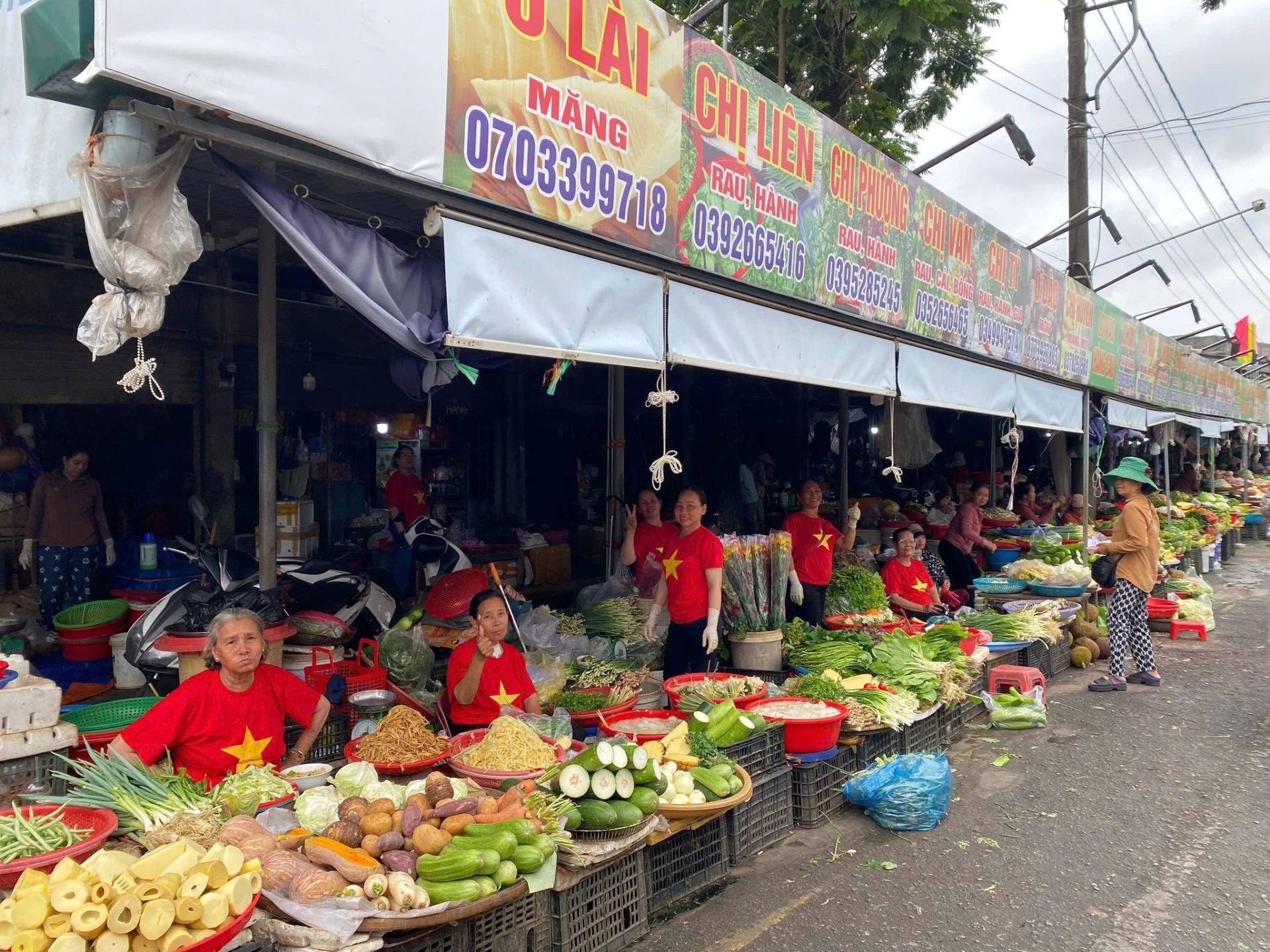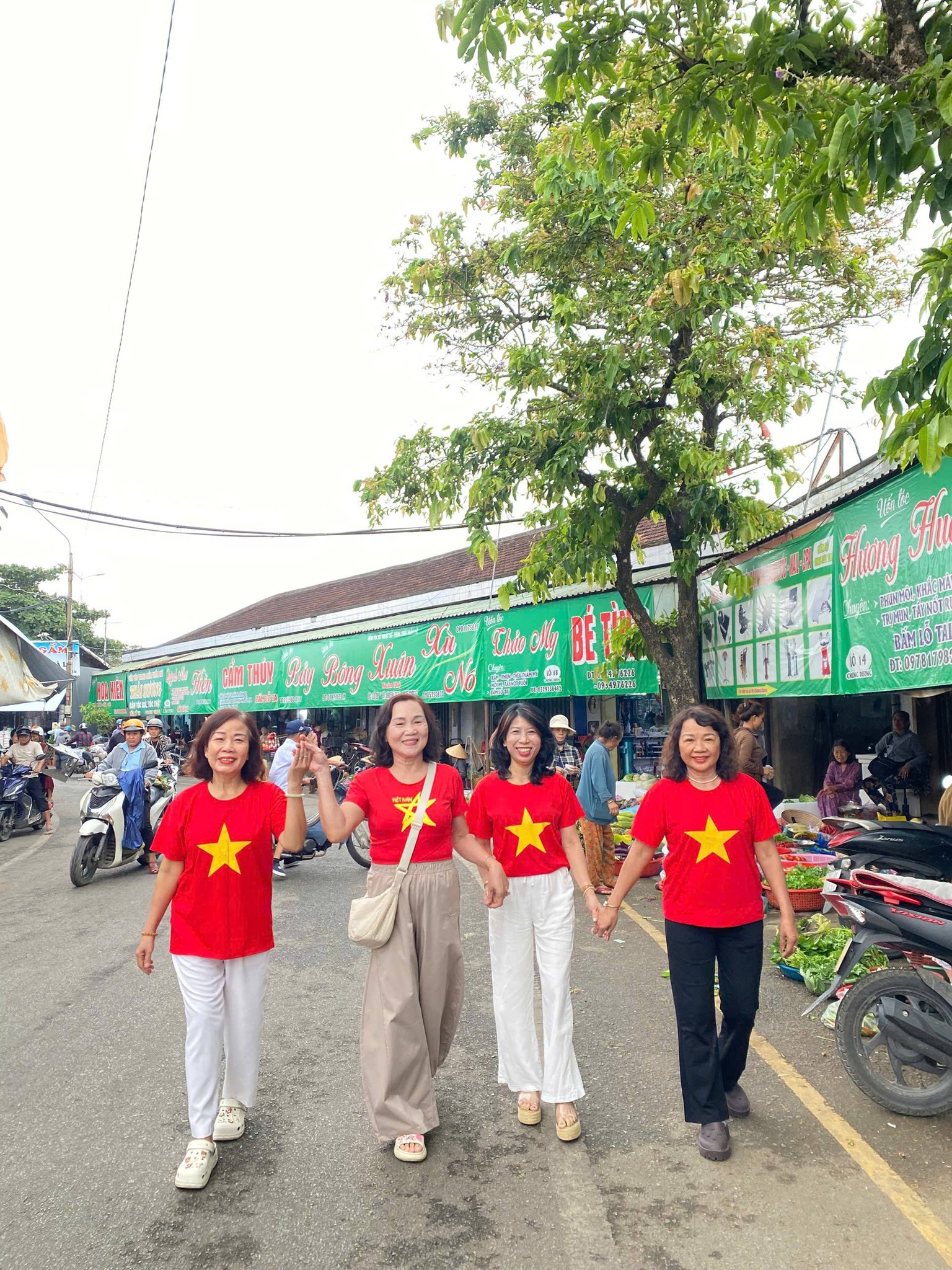 Sắc đỏ lan tỏa khắp các gian hàng, tạo nên hình ảnh vừa gần gũi, vừa đầy tự hào dân tộc.