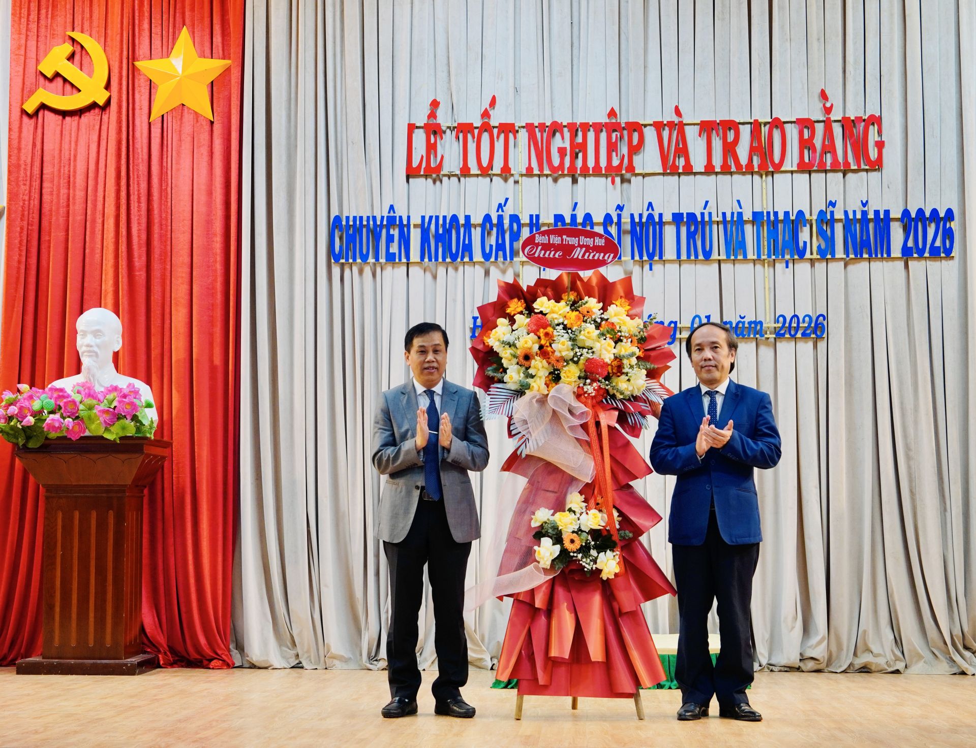 Trong đó, 138 học viên được cấp bằng chuyên khoa cấp II thuộc 22 chuyên ngành khác nhau; 120 học viên được cấp bằng bác sĩ nội trú thuộc 14 chuyên ngành (102 học viên là bác sĩ nội trú đồng thời được cấp bằng thạc sĩ, thuộc 9 ngành) và 126 học viên được cấp bằng thạc sĩ năm 2025 thuộc 13 ngành đào tạo.