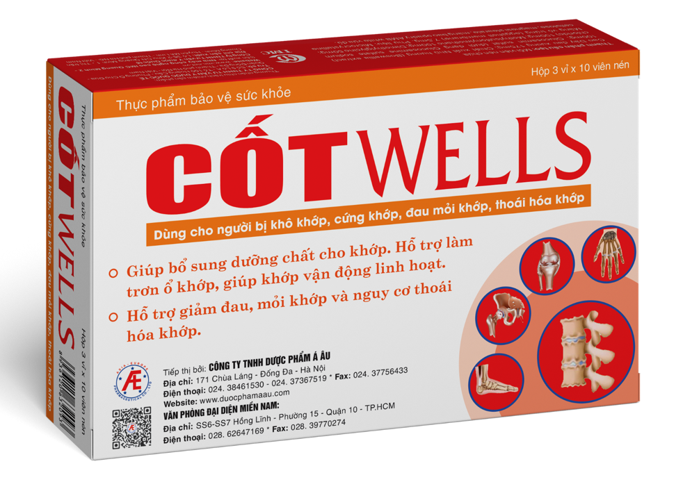 Thực phẩm bảo vệ sức khỏe CốtWells - Dùng cho người bị khô khớp, cứng khớp, đau mỏi khớp ![]() Với thành phần chính là màng vỏ trứng, TPBVSK CốtWells hỗ trợ làm trơn ổ khớp, giúp khớp vận động linh hoạt. Hỗ trợ giảm đau, mỏi khớp và nguy cơ thoái hóa khớp. Sản phẩm dùng cho: ● Người bị khô khớp, cứng khớp, đau mỏi khớp. ● Người thoái hóa khớp, người lao động nặng nhọc nguy cơ gây thoái hóa khớp. Hướng dẫn sử dụng ● Uống 4 viên/ngày, chia 2 lần ● Nên uống trong bữa ăn hoặc sau khi ăn 1 giờ Tiếp thị và phân phối bởi: Công ty TNHH Dược Phẩm Á Âu Á Âu - Địa chỉ an tâm, tin cậy, chất lượng suốt 20 năm Địa chỉ: Số 171 Chùa Láng - Phường Láng Thượng - Quận Đống Đa - Hà Nội ĐT: 024.38461530 - 028.62647169 Giấy phép XNQC: 2043/2019/ATTP-XNQC *Thực phẩm này không phải là thuốc và không có tác dụng thay thế thuốc chữa bệnh. *Sản phẩm có bán tại các nhà thuốc trên toàn quốc. |