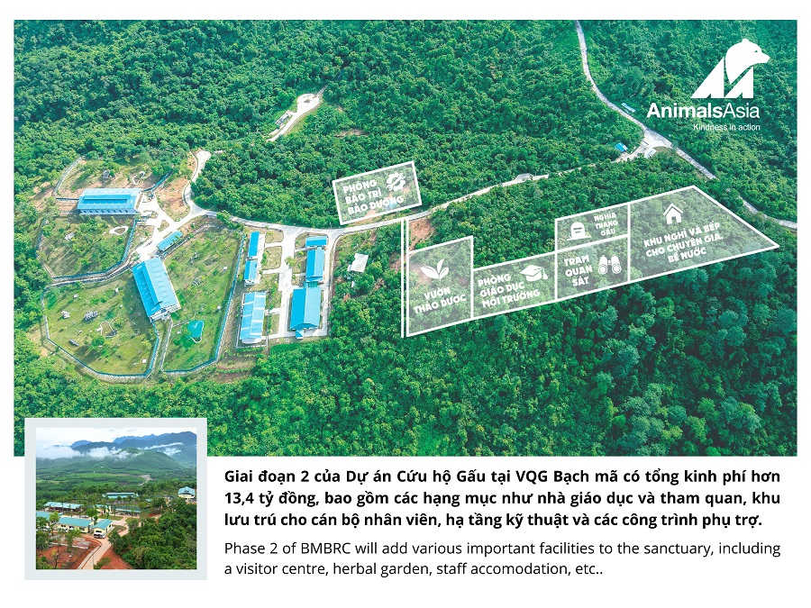 Trong giai đoạn 2, với tổng kinh phí hơn 13,4 tỷ đồng do Tổ chức Động vật châu Á viện trợ không hoàn lại, Trung tâm sẽ xây dựng Trung tâm dành cho du khách, tạo không gian cho các chương trình triển lãm và học tập ngoại khóa nhằm nâng cao nhận thức cộng đồng; đồng thời xây dựng khu lưu trú cho cán bộ, bác sĩ thú y và nhân viên chăm sóc gấu, cũng như hoàn thiện hệ thống hạ tầng kỹ thuật và các công trình phụ trợ. Khi hoàn thành, Trung tâm Cứu hộ gấu Việt Nam tại Vườn quốc gia Bạch Mã sẽ trở thành cơ sở cứu hộ hiện đại, đồng thời là trung tâm giáo dục bảo tồn thiên nhiên tiêu biểu của khu vực miền Trung.