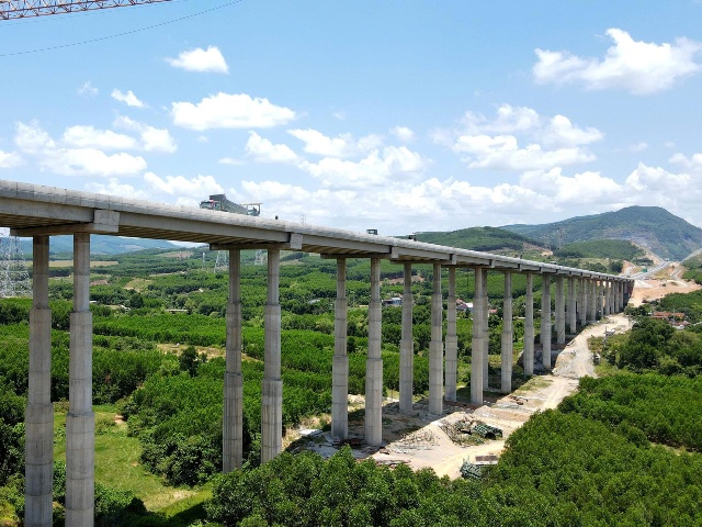 Một trong những hạng mục nổi bật là cầu số 1 tại xã Kỳ Hoa (Hà Tĩnh) – công trình dài gần 1 km, vốn đầu tư khoảng 300 tỷ đồng, nối liền hai quả đồi, bắc qua thung lũng sâu. Cầu gồm 22 nhịp, trụ cao 30–40 m, riêng trụ chính gần 50 m – cao nhất toàn tuyến.