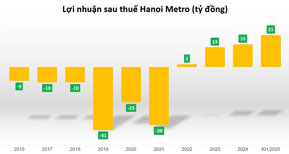 Trước đây, gần 90% doanh thu của Hanoi Metro phụ thuộc vào trợ giá Nhà nước, cho thấy hoạt động vận tải chưa thể tự cân đối thu – chi. Năm 2025, công ty đặt mục tiêu tổng doanh thu 878 tỷ đồng, lợi nhuận sau thuế 20,7 tỷ đồng và phục vụ hơn 19,3 triệu lượt khách. Sau 6 tháng, doanh nghiệp đã hoàn thành hơn một nửa kế hoạch.