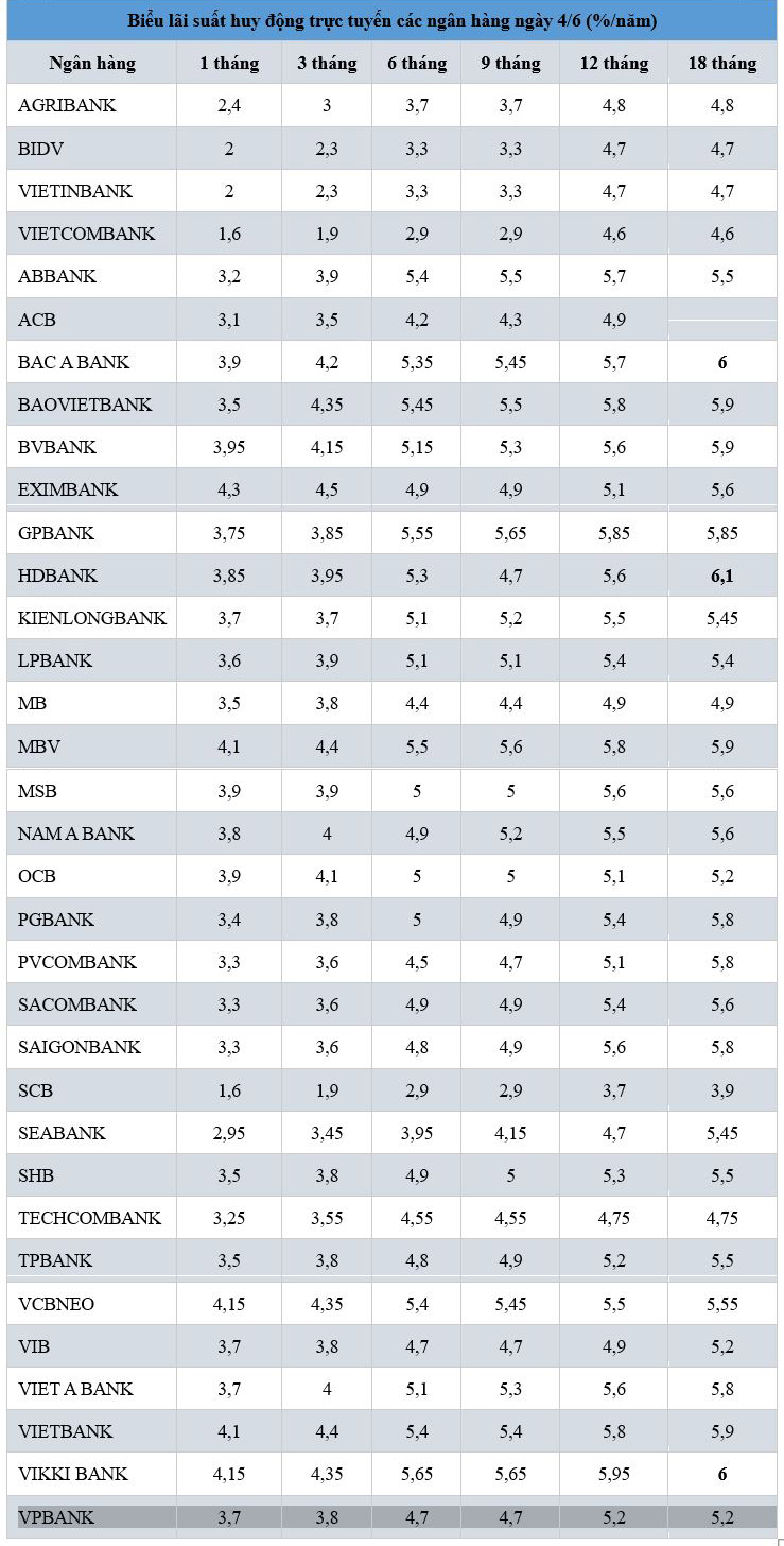 Đáng chú ý, lãi suất huy động tại các kỳ hạn từ 18 đến 60 tháng, LPBank đồng loạt giảm 0,2%/năm. Đây cũng là ngân hàng đầu tiên giảm lãi suất huy động trong tháng 6/2025.