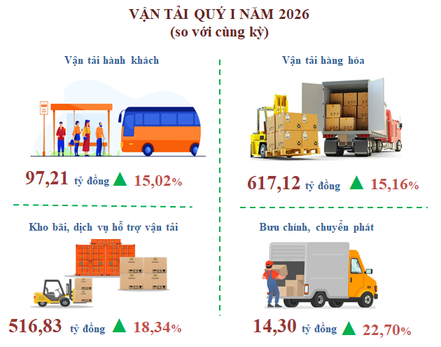 Du lịch tiếp tục là điểm sáng khi lượng khách tăng mạnh, đặc biệt là du lịch tâm linh. Các lễ hội lớn thu hút hàng triệu lượt khách, góp phần thúc đẩy dịch vụ lưu trú, ăn uống và vận tải phát triển. Doanh thu dịch vụ lưu trú, ăn uống quý I tăng 17,32%.