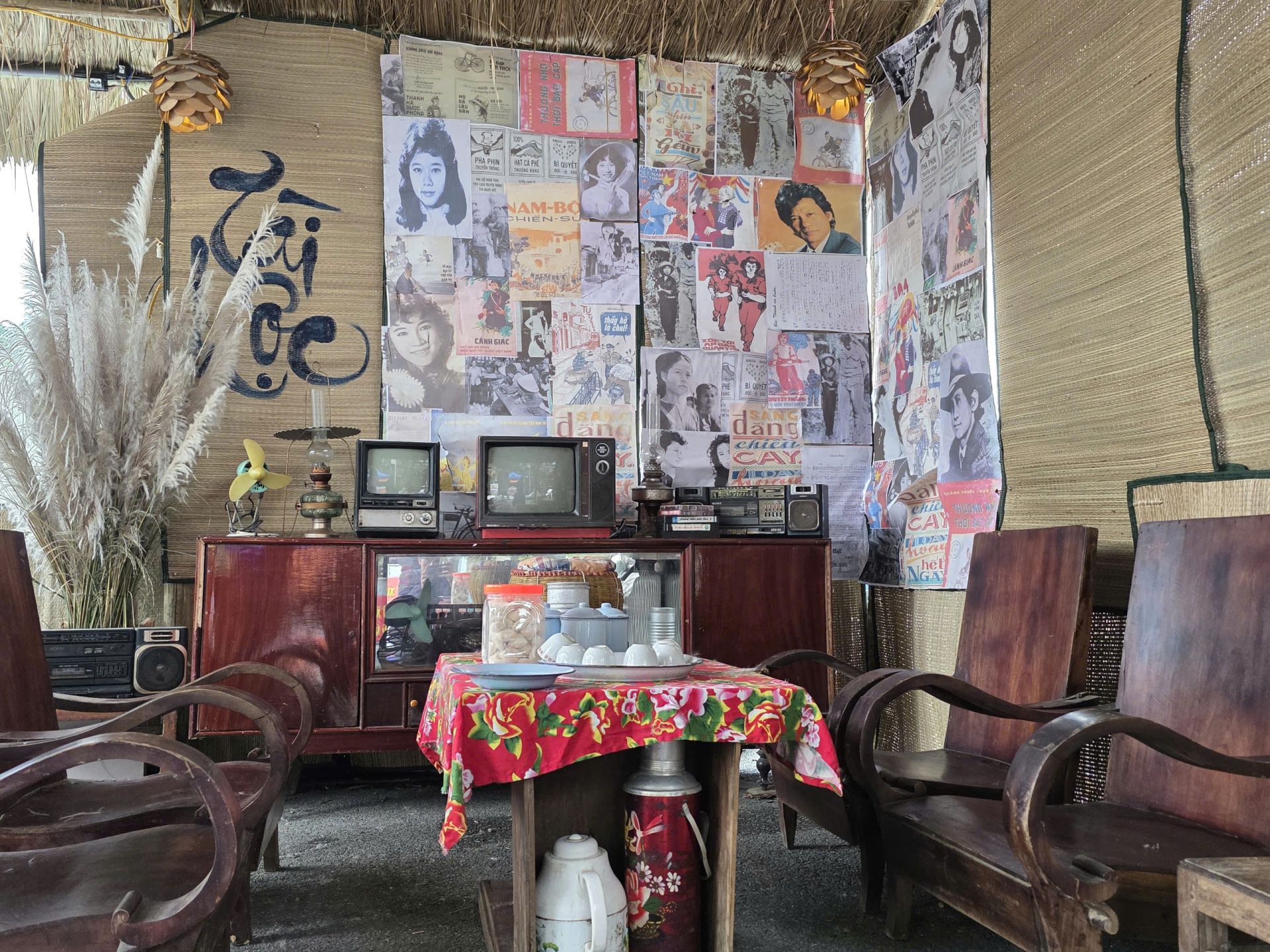 Trong khuôn khổ Festival Sông Hồng 2025, không gian “Chợ Cốc Lếu xưa” được phục dựng sinh động cạnh dòng sông Hồng, với chất liệu tre nứa, mái gianh và những lều quán mộc mạc. Cách bày trí quen thuộc bằng mẹt tre, thúng gạo, quang gánh… đưa người xem trở về với nhịp sống buôn bán từng rất thịnh vượng của thành phố Lào Cai nhiều thập kỷ trước.
