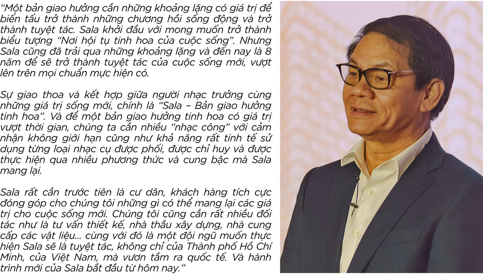 Tham gia sự kiện, Chủ tịch HĐQT THACO Trần Bá Dương đã chia sẻ về ý nghĩa của “bản giao hưởng tinh hoa” mở ra hành trình mới của Khu đô thị Sala.
