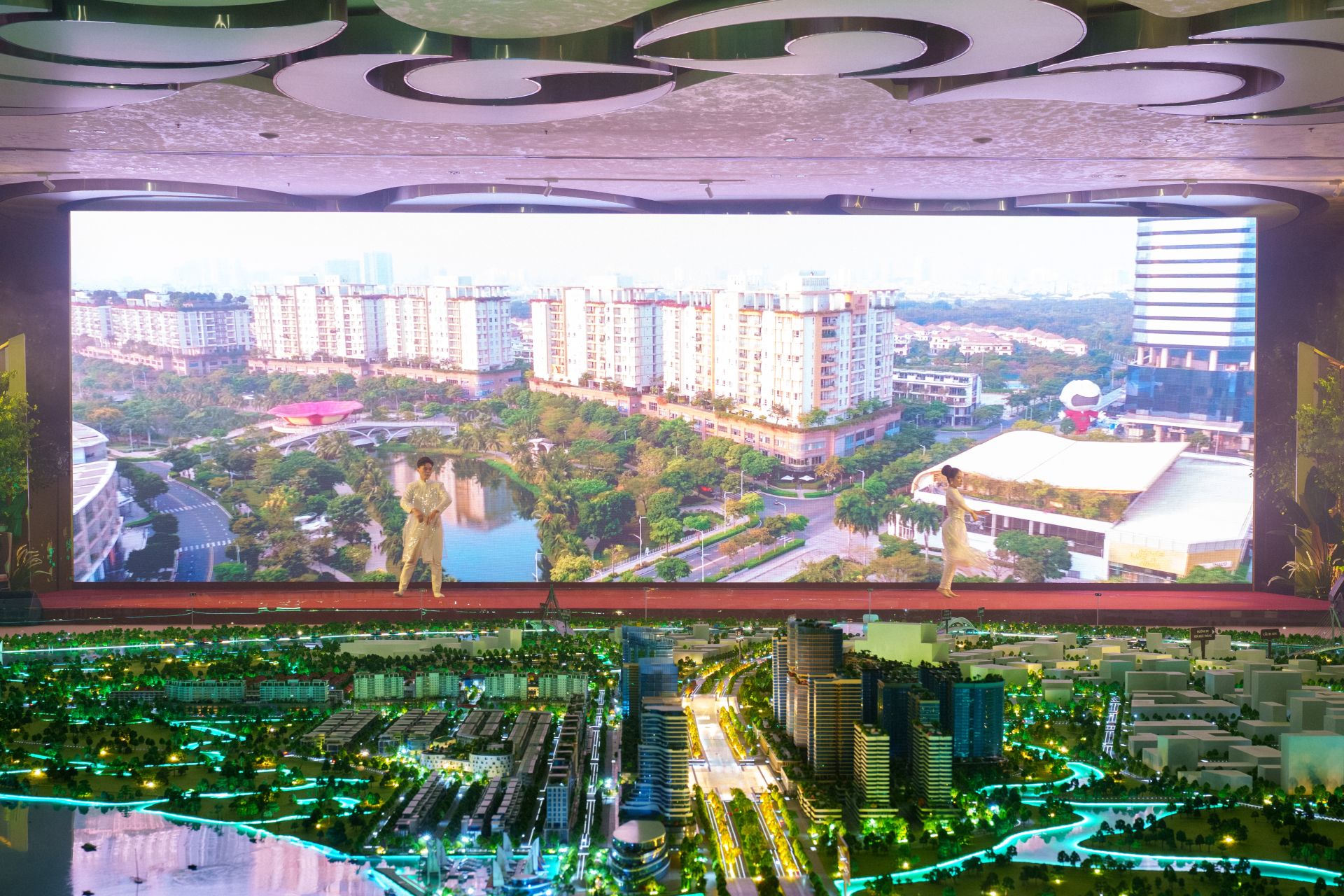 Điểm nhấn của Sala Sales Gallery là sa bàn quy hoạch tổng thể quy mô lớn, tái hiện toàn cảnh Khu đô thị Sala với hai phân khu Bắc – Nam, cùng hệ thống hạ tầng, cảnh quan và các công trình trọng điểm. Sa bàn đóng vai trò trung tâm, giúp khách hàng hình dung rõ nét quá trình phát triển đô thị, từ quy hoạch tổng thể đến từng dự án thành phần, cũng như tiềm năng kết nối và giá trị phát triển trong dài hạn.