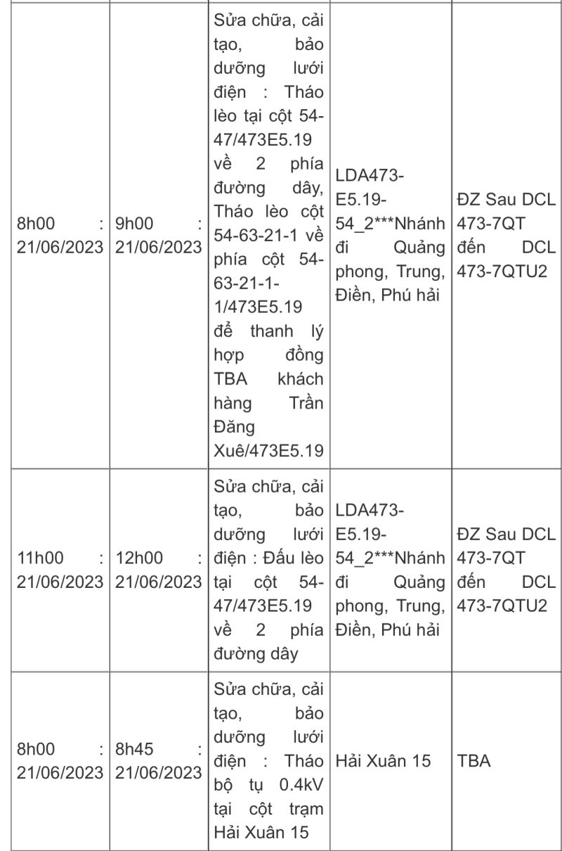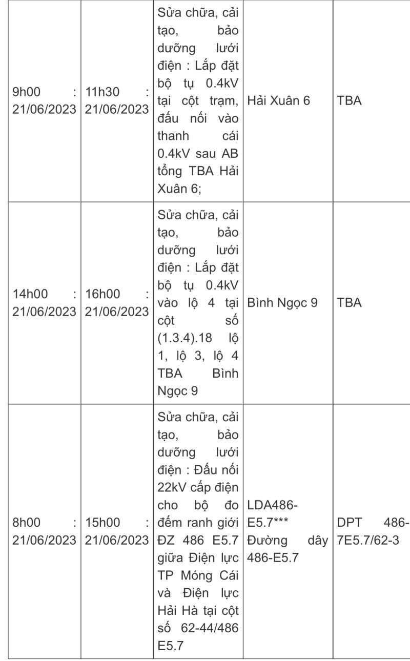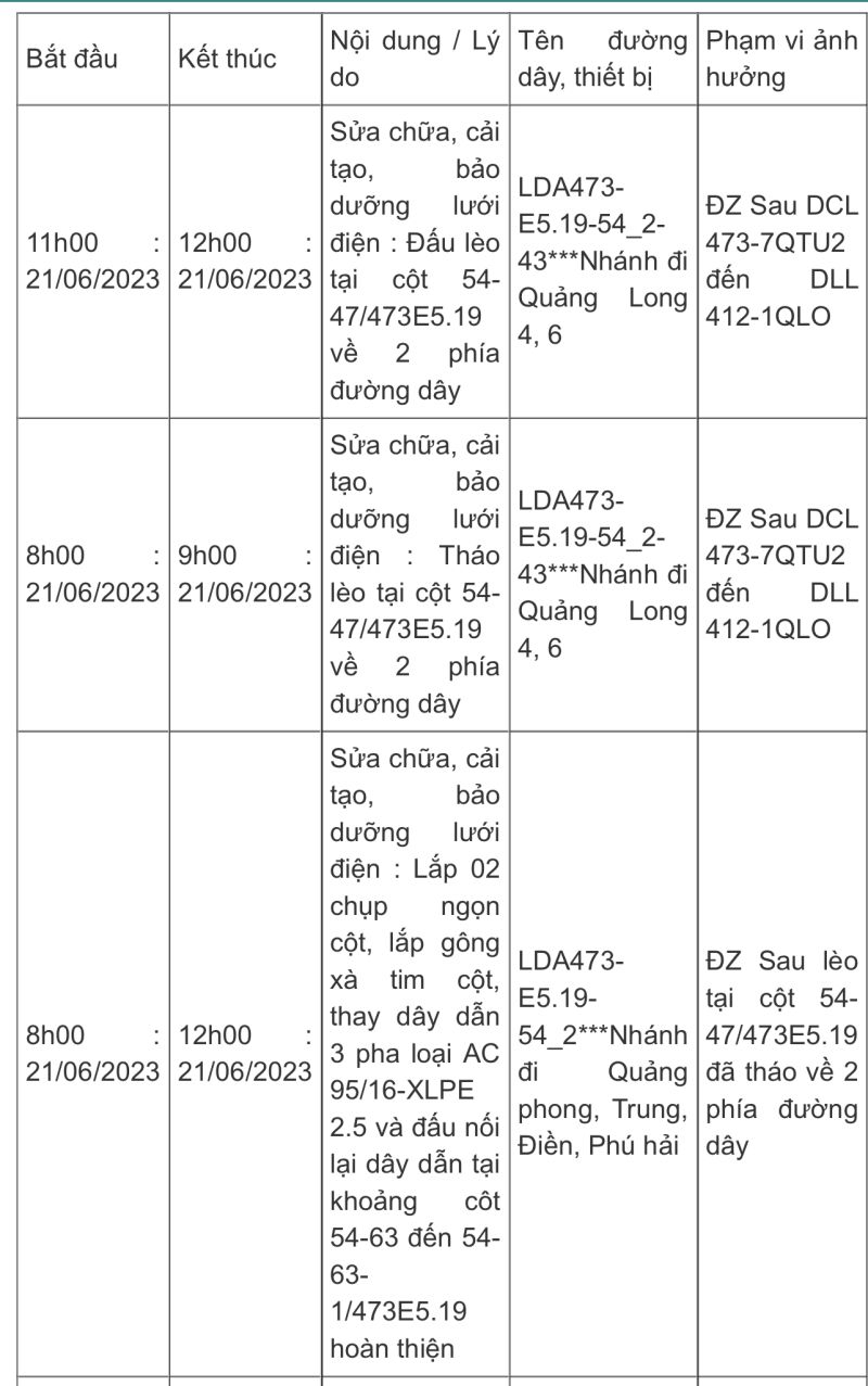 Công ty Điện lực Quảng Ninh thông báo về kế hoạch cắt điện trên toàn địa bàn tỉnh, trong ngày 21/6.