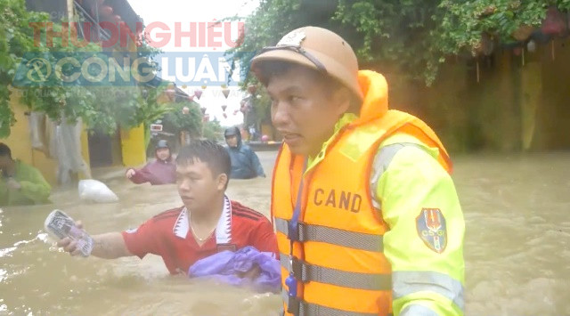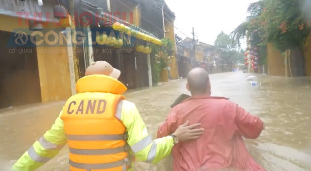 Lực lượng Cảnh sát giao thông và Công an phường Hội An đã huy động tối đa quân số, dùng xuồng máy, phao cứu sinh, thậm chí lội bộ vào từng kiệt, hẻm để hướng dẫn và hỗ trợ du khách di chuyển đến khu vực an toàn.